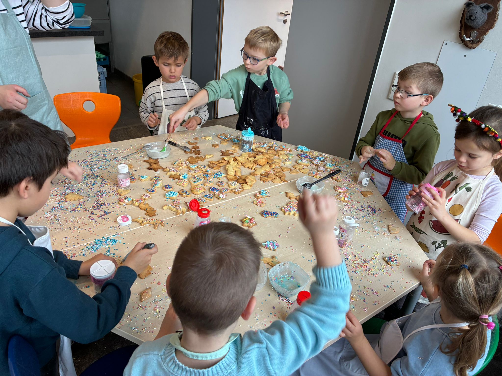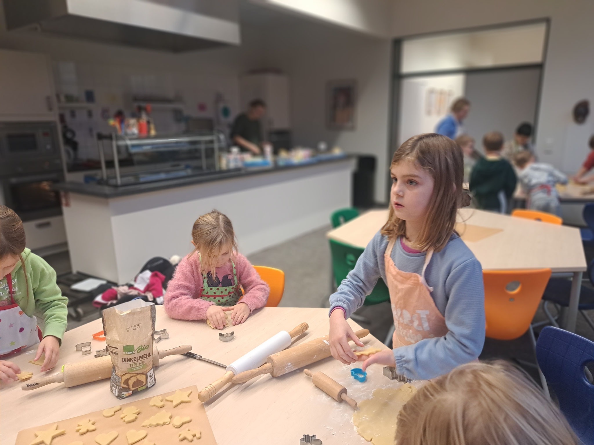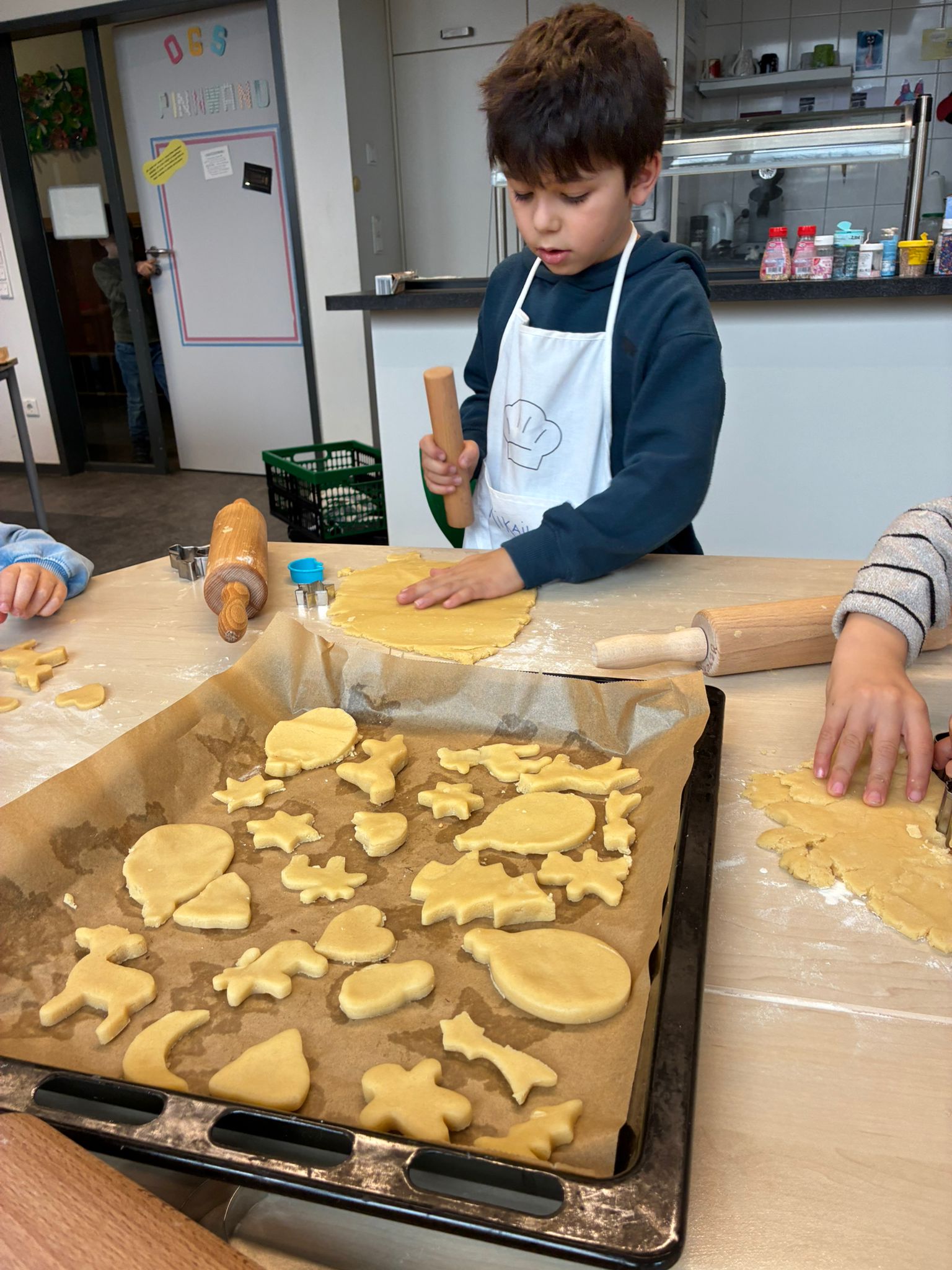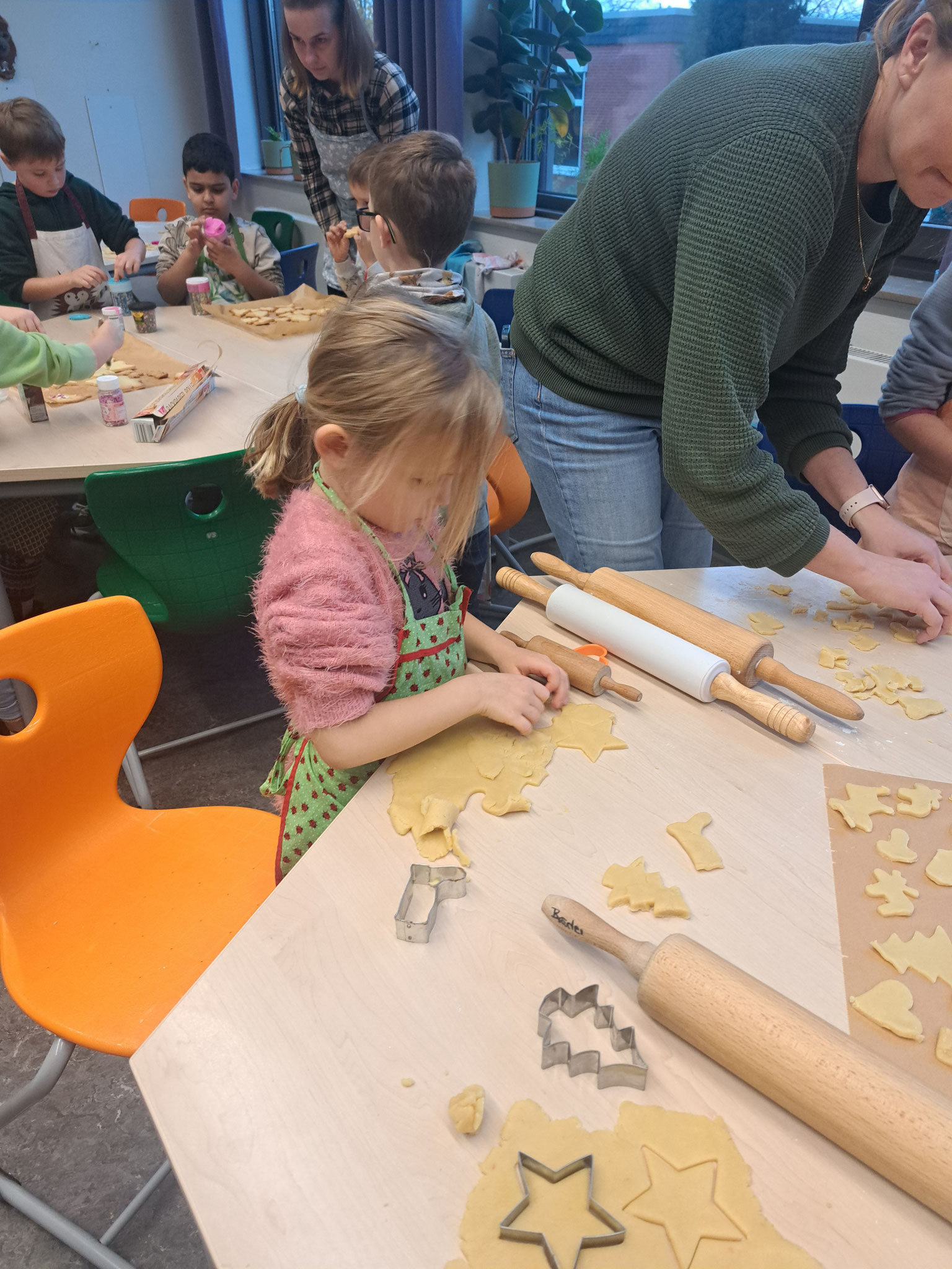 In zwei Gruppen wurden fleißig Teige ausgerollt und Plätzchen ausgestochen. Nachdem diese im Ofen waren, dekorierten wir alles noch mit Streuseln, Schokostückchen und vielen anderen Leckereien. Toll sehen unsere Weihnachtskekse nun aus!