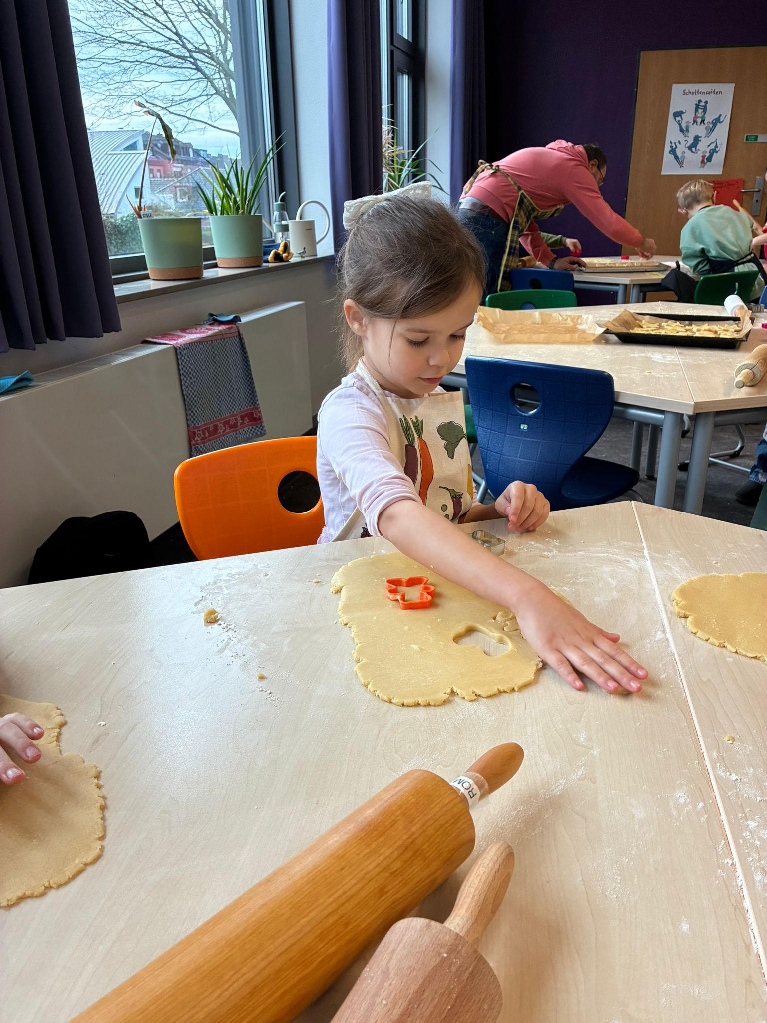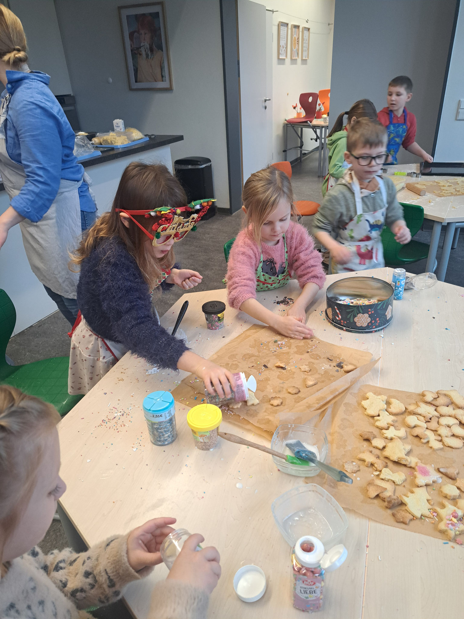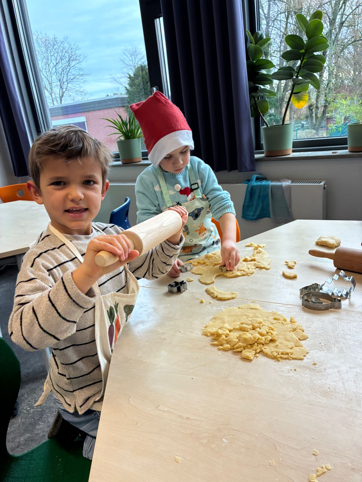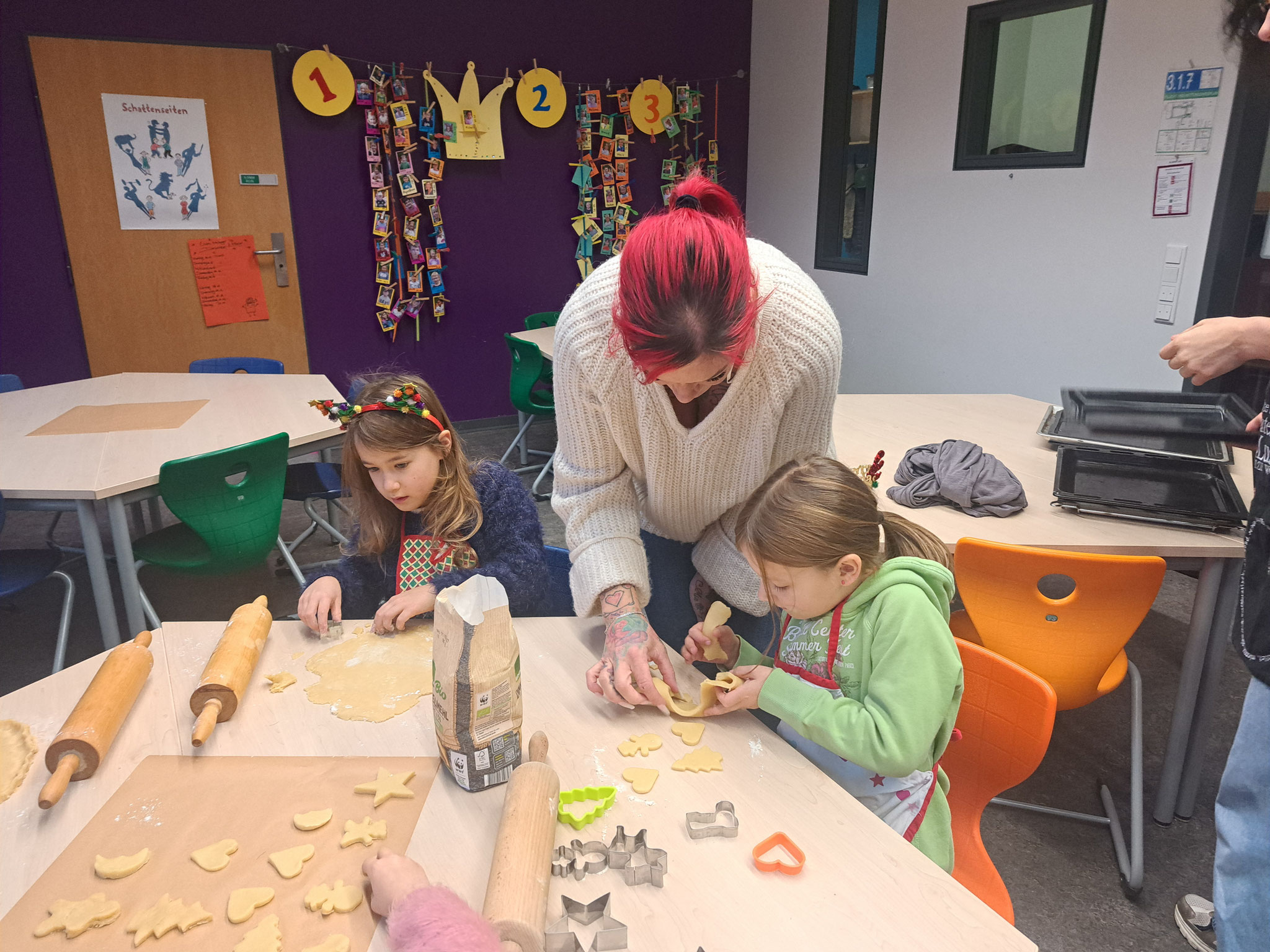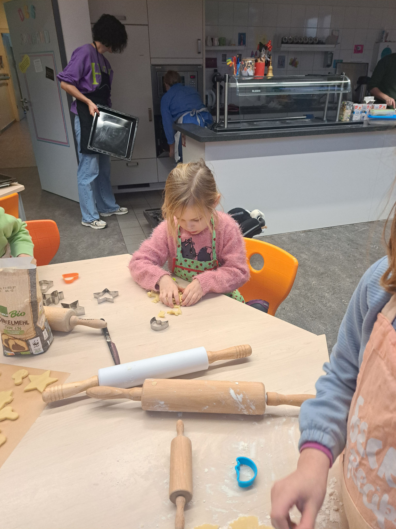 In zwei Gruppen wurden fleißig Teige ausgerollt und Plätzchen ausgestochen. Nachdem diese im Ofen waren, dekorierten wir alles noch mit Streuseln, Schokostückchen und vielen anderen Leckereien. Toll sehen unsere Weihnachtskekse nun aus!