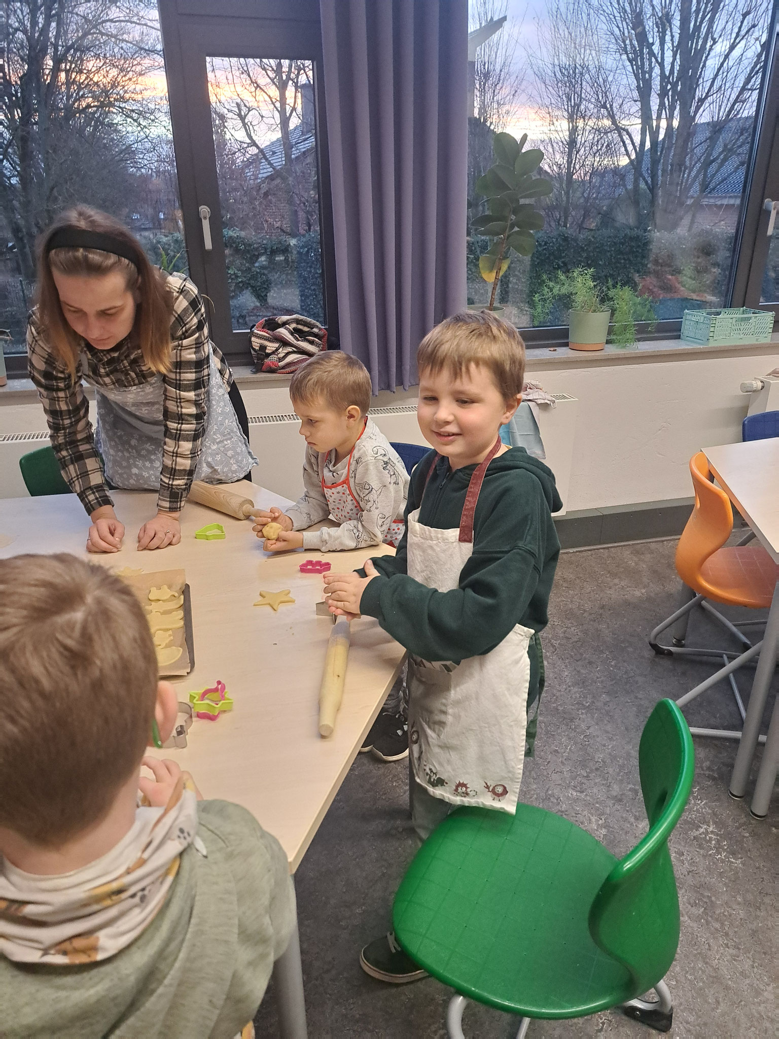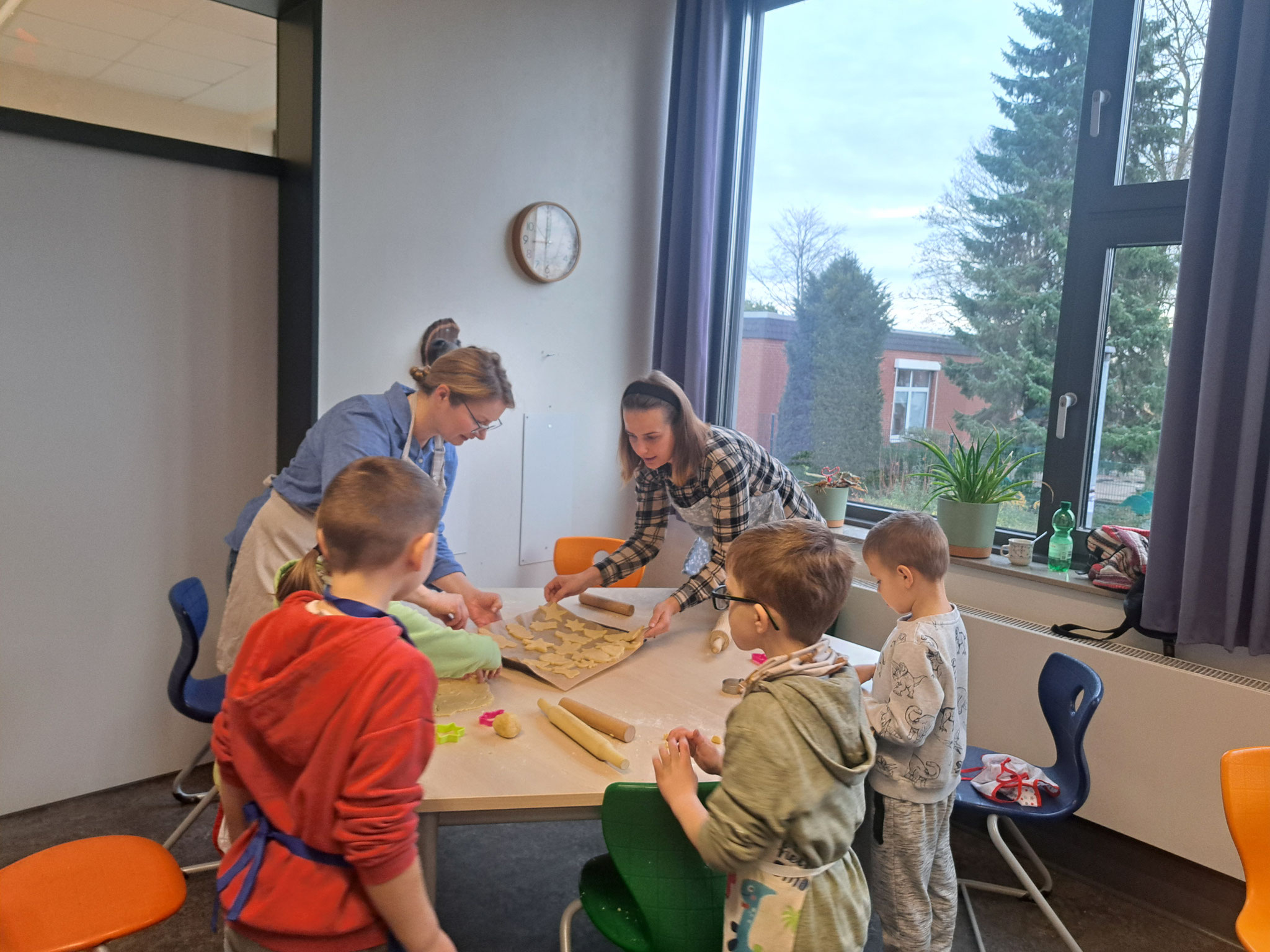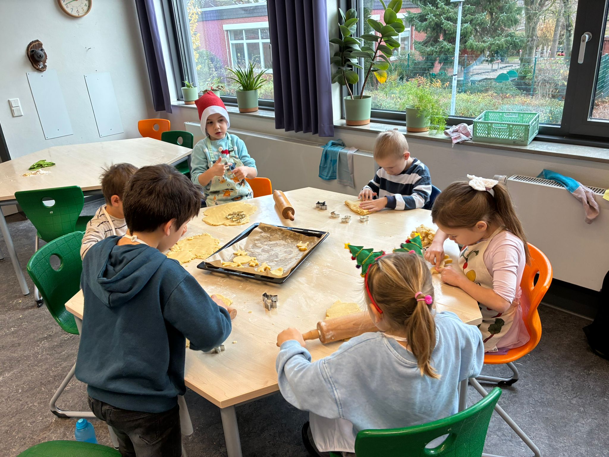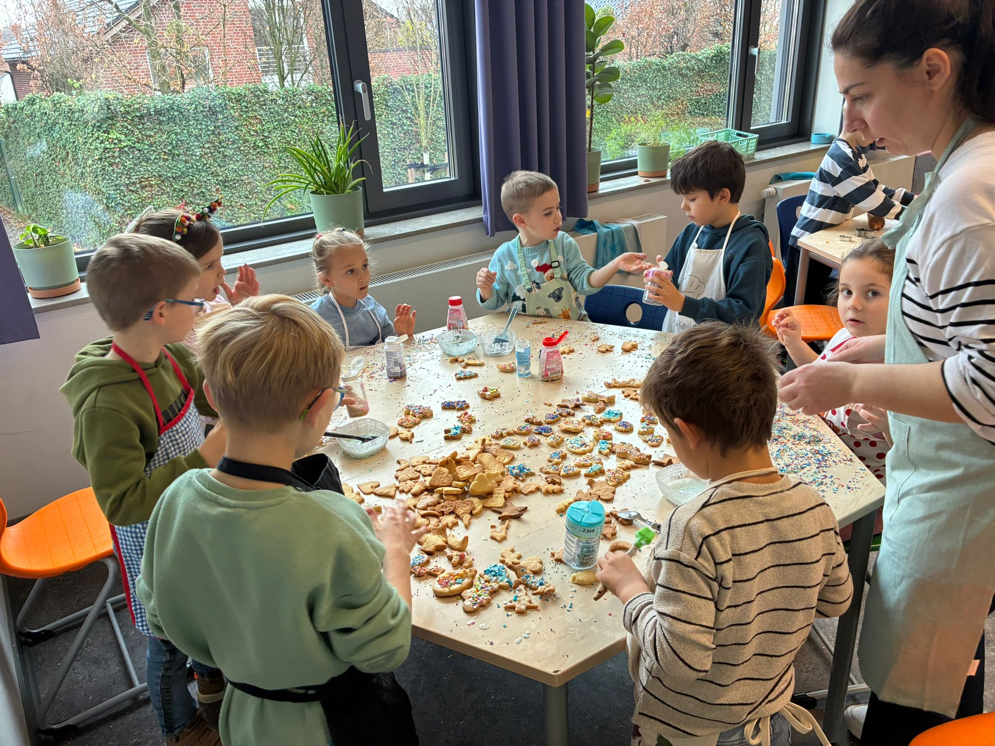 In zwei Gruppen wurden fleißig Teige ausgerollt und Plätzchen ausgestochen. Nachdem diese im Ofen waren, dekorierten wir alles noch mit Streuseln, Schokostückchen und vielen anderen Leckereien. Toll sehen unsere Weihnachtskekse nun aus!