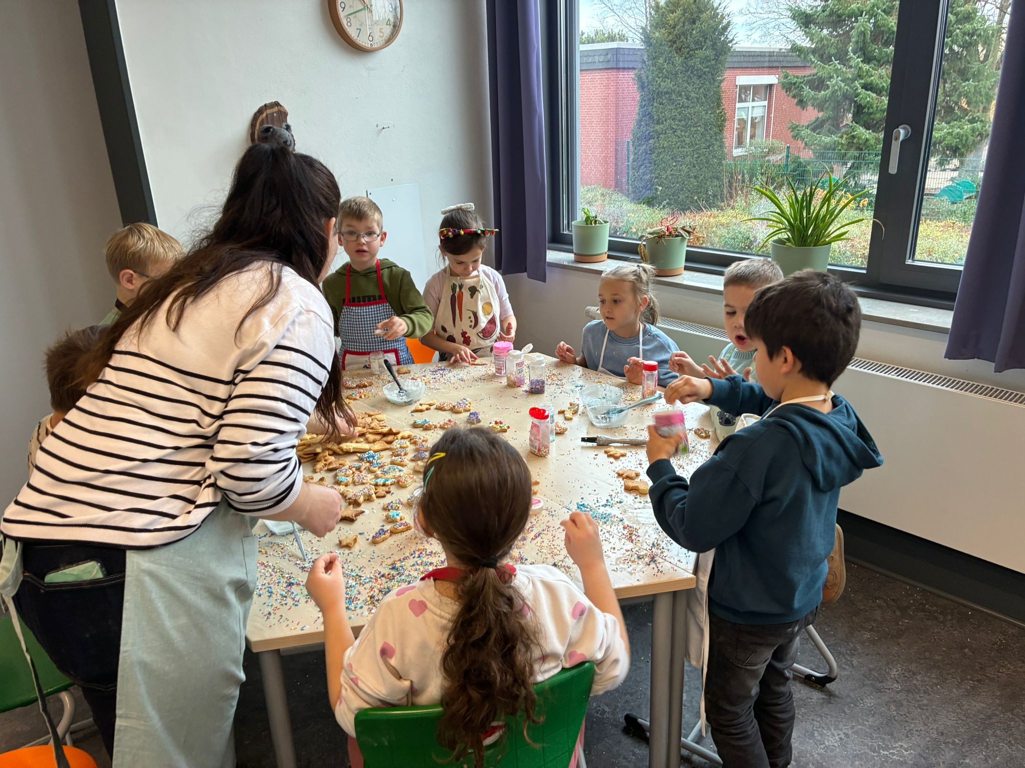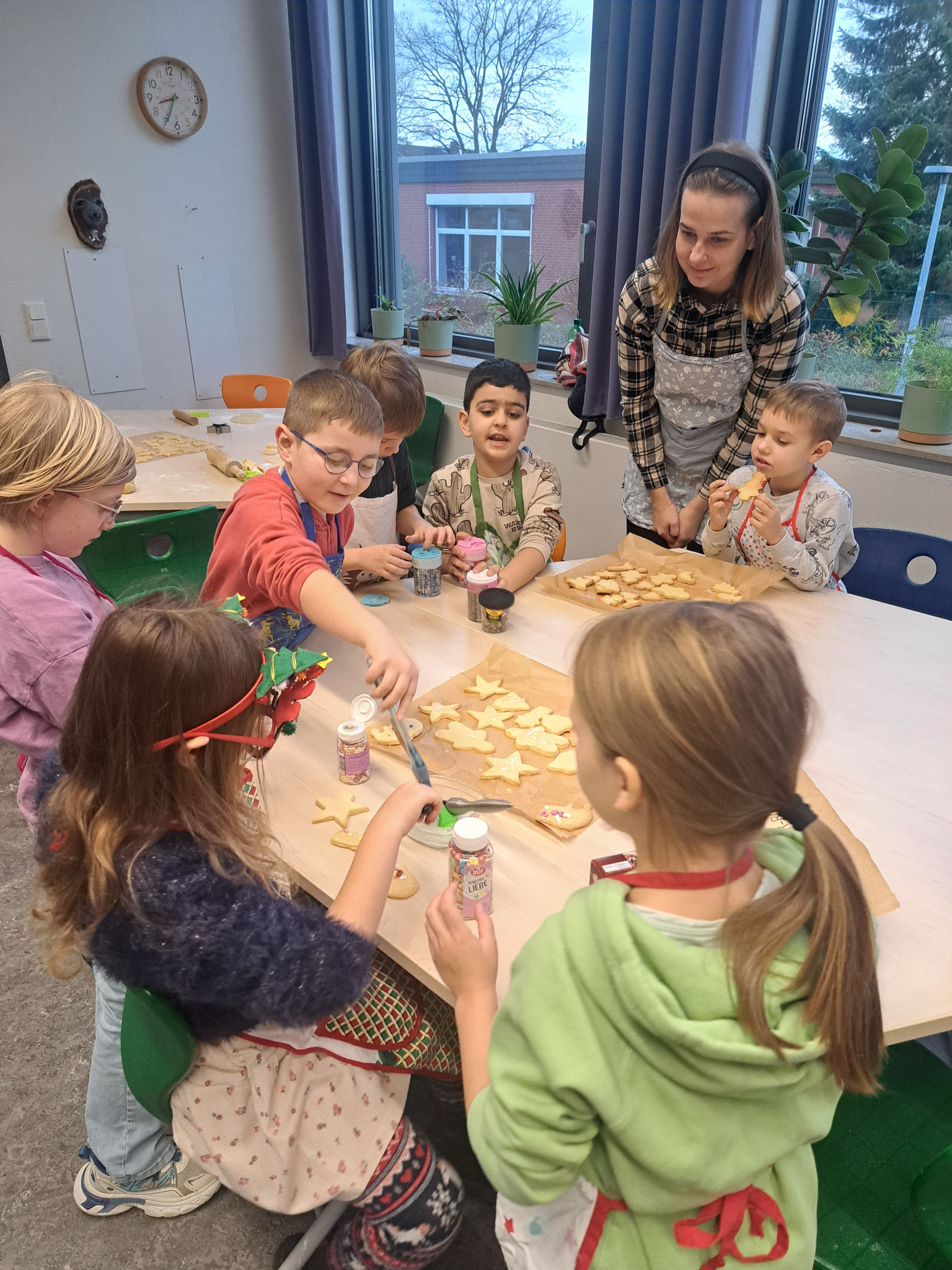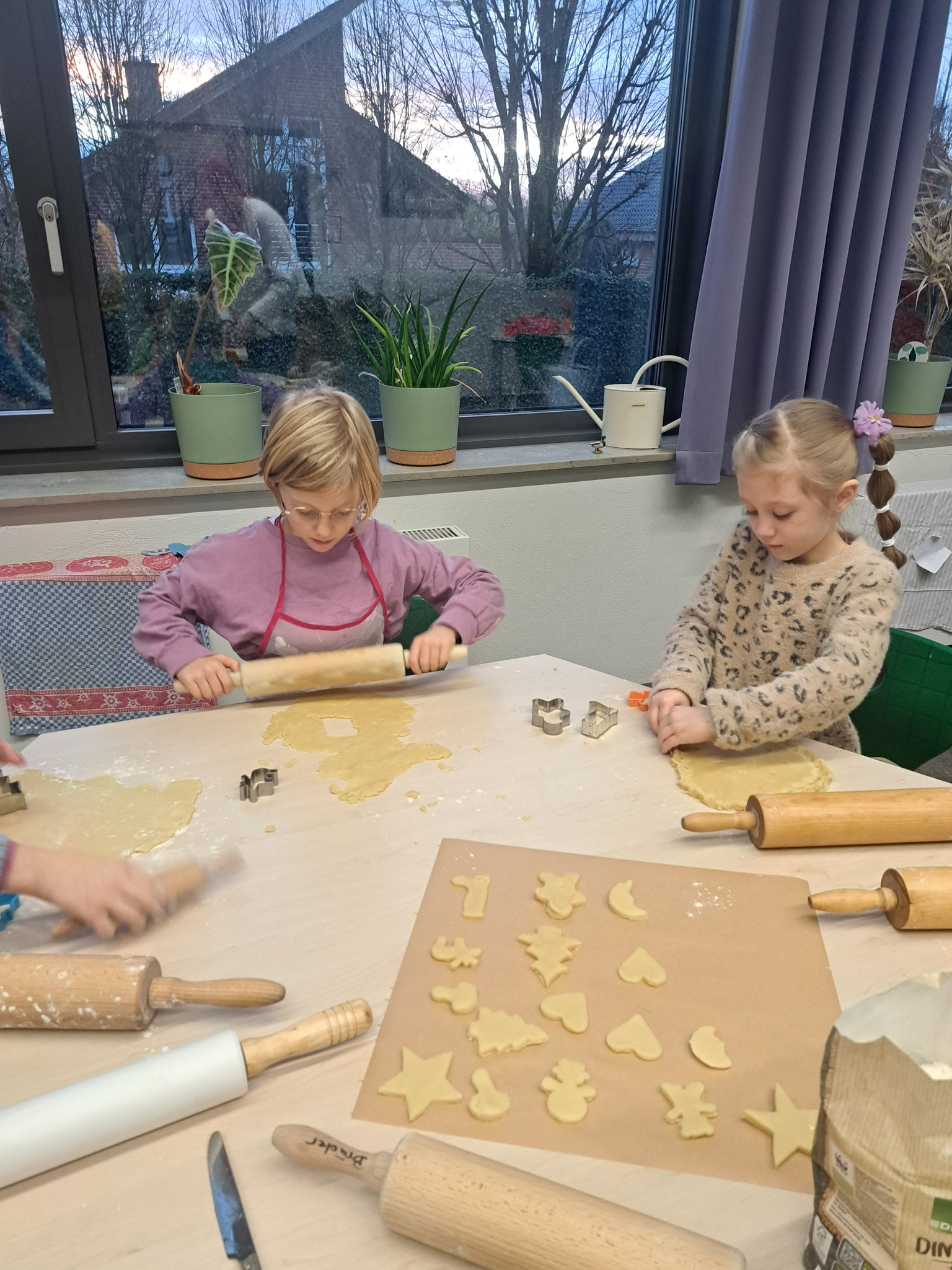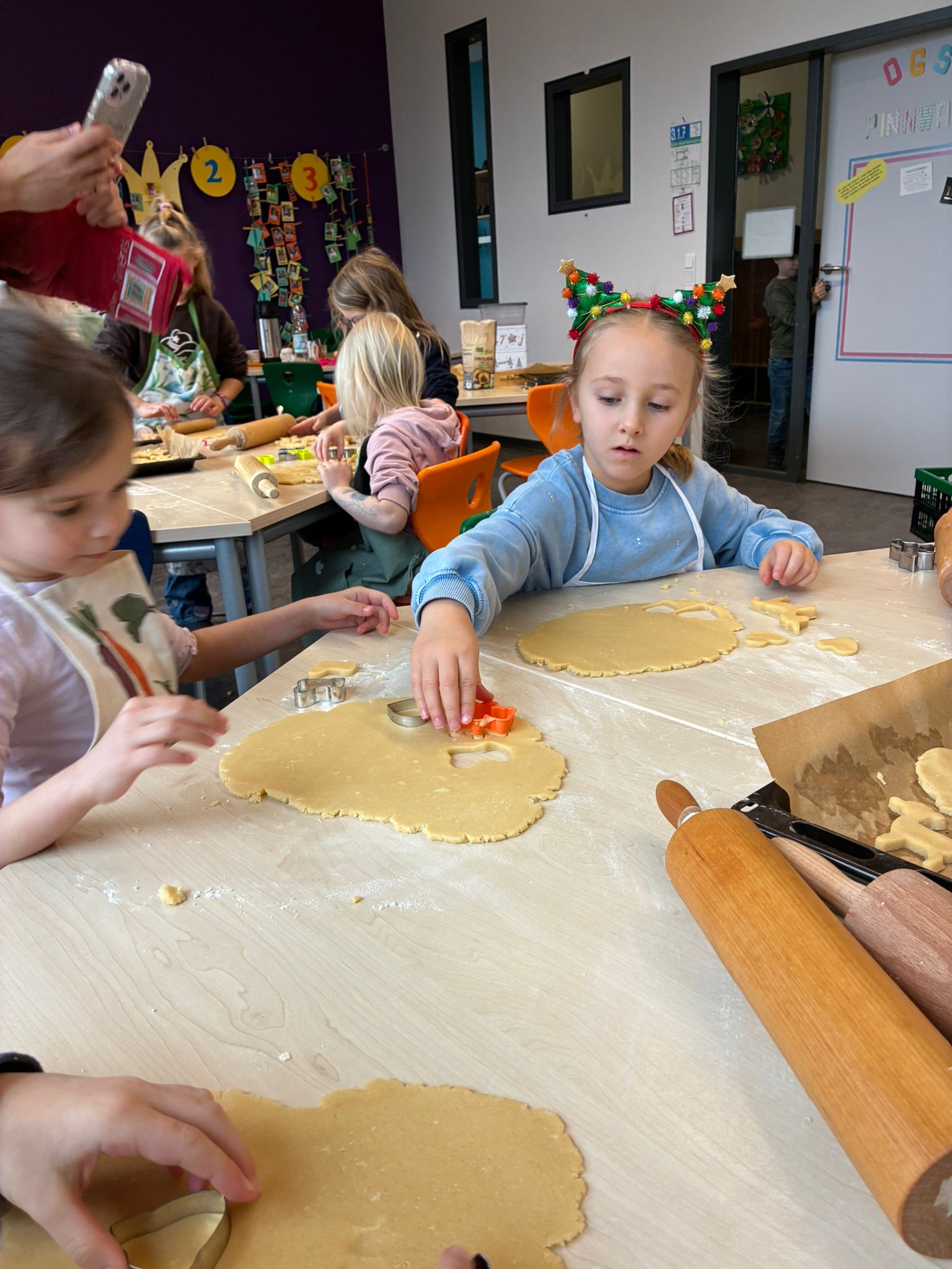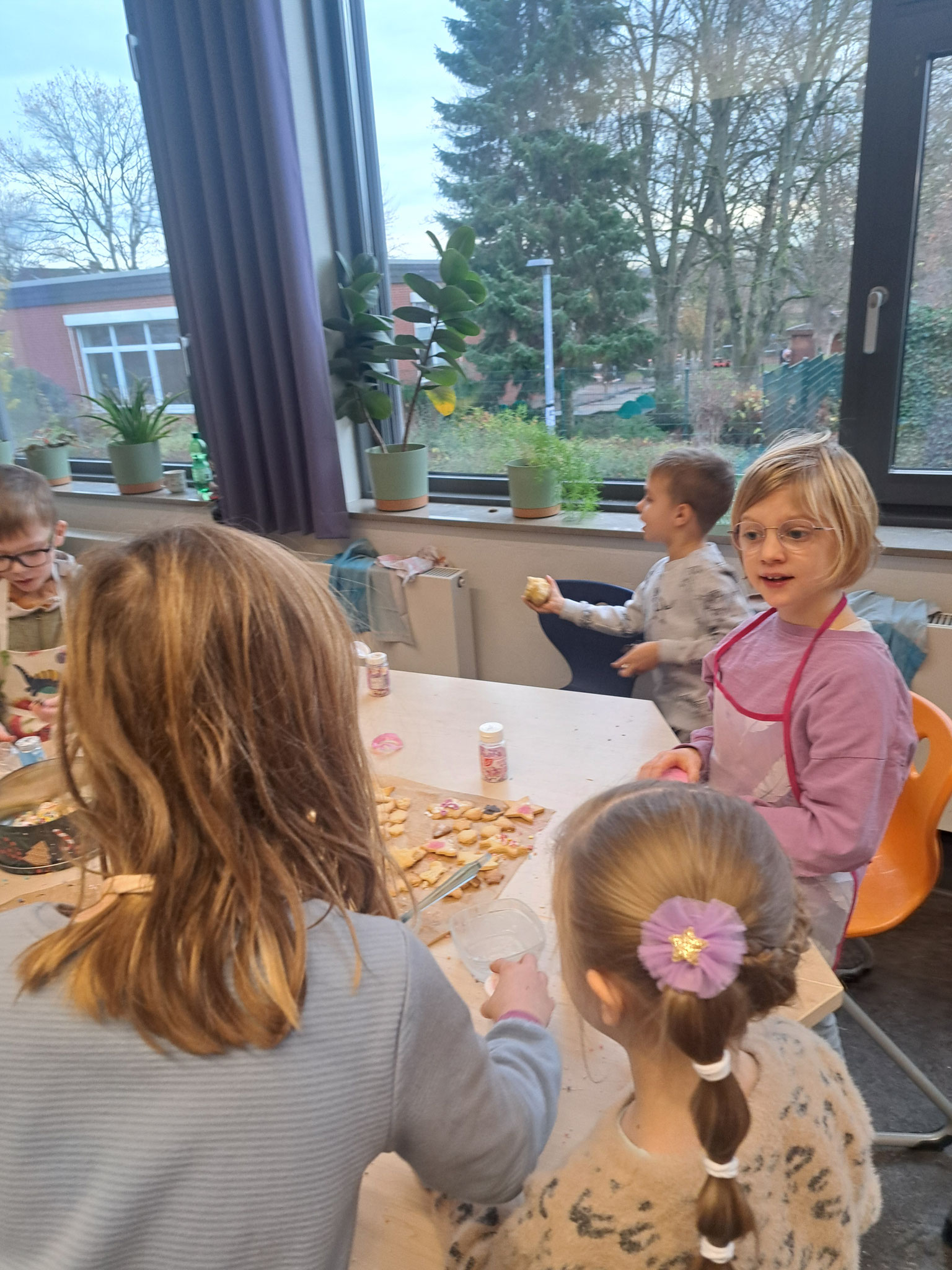 In zwei Gruppen wurden fleißig Teige ausgerollt und Plätzchen ausgestochen. Nachdem diese im Ofen waren, dekorierten wir alles noch mit Streuseln, Schokostückchen und vielen anderen Leckereien. Toll sehen unsere Weihnachtskekse nun aus!