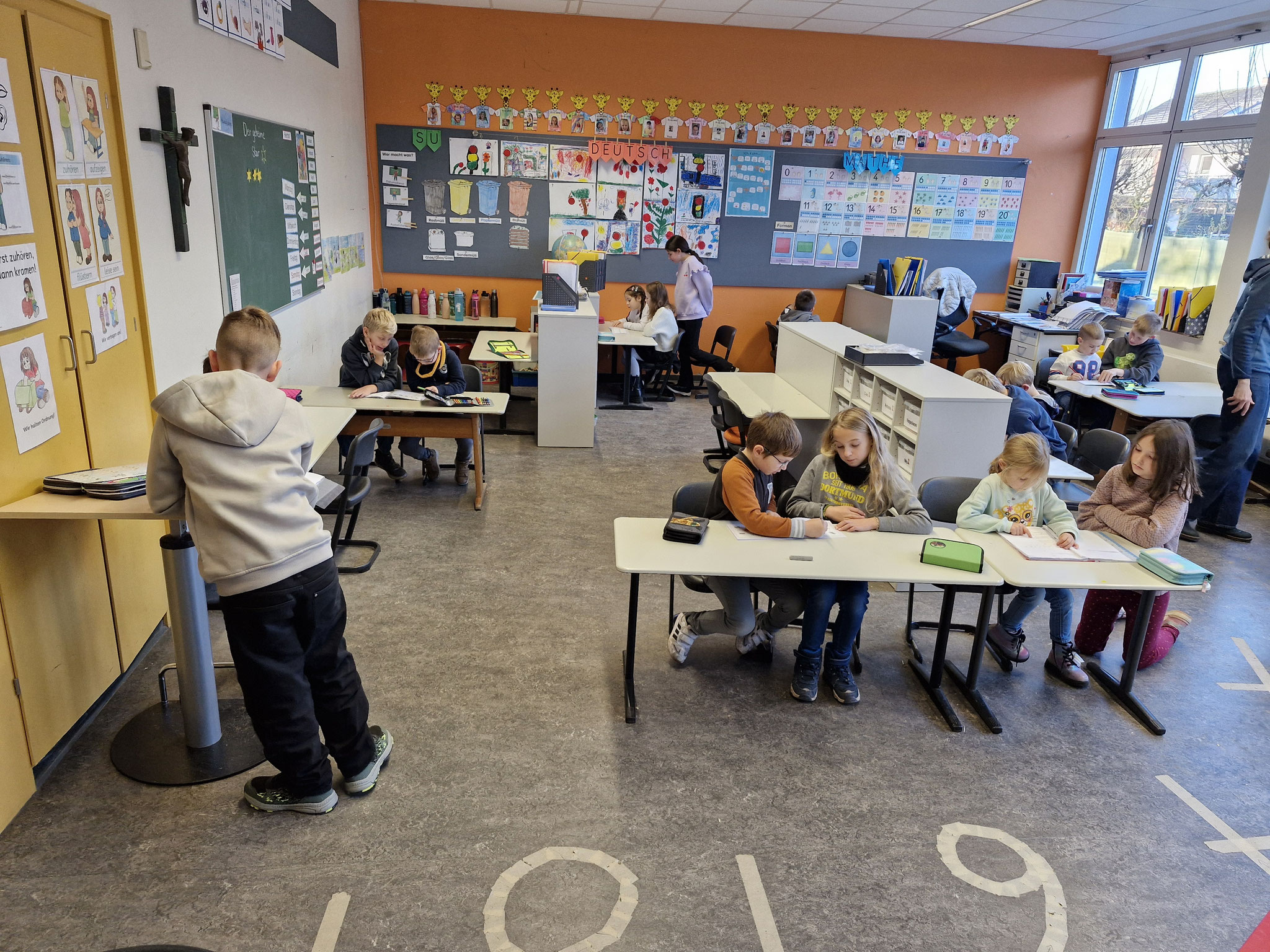 Am 11.9.2025 hatten wir unser Schulwegtraining mit der Polizei. Dabei unterstützten uns viele Eltern und auch einige Großeltern und Paten.