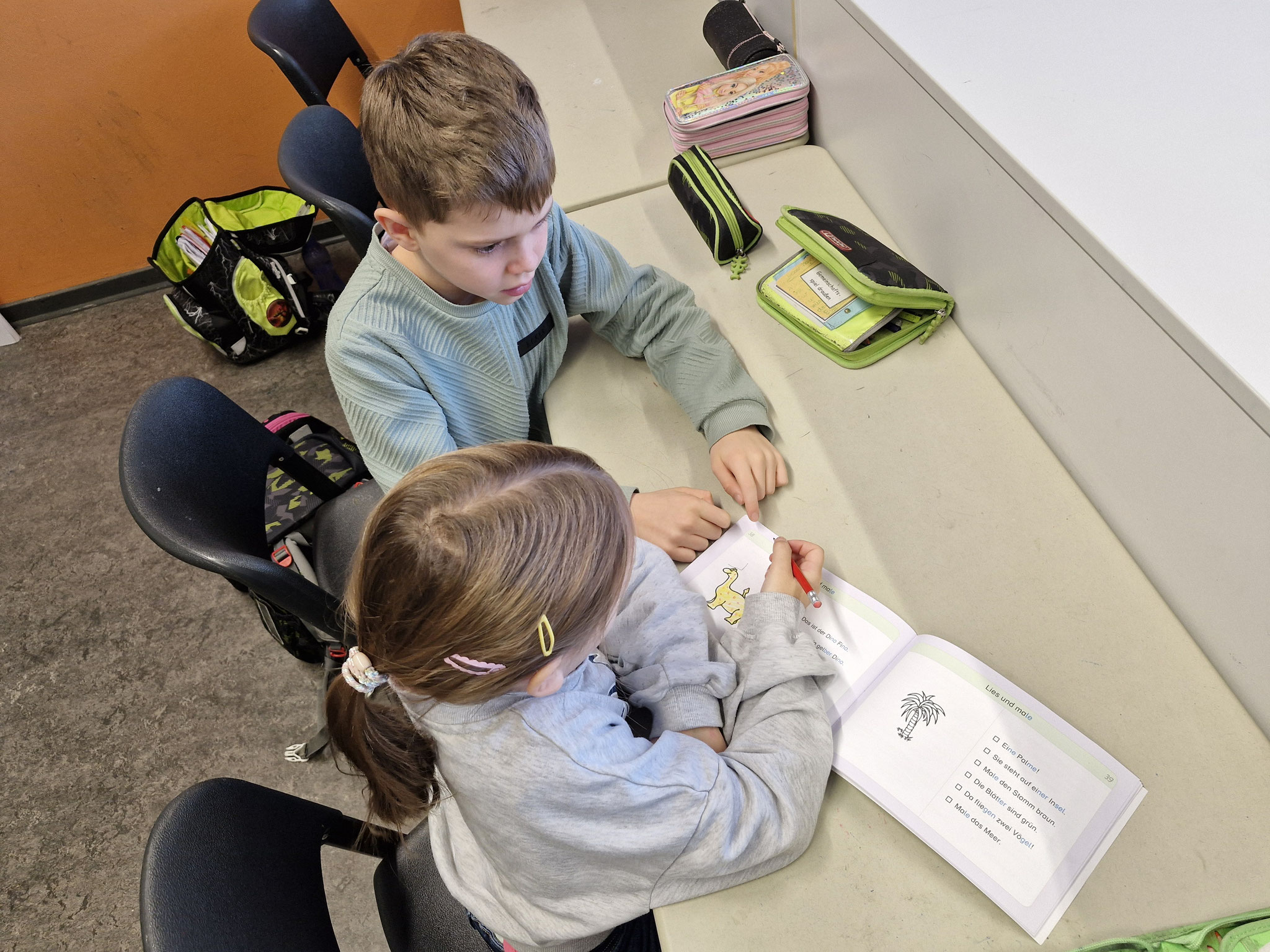 Als Erstes zeigen wir unseren Paten, wie gut wir schon lesen können. Egal, ob Lesezettel, Lies mal-Heft oder erstes Buch … unsere Paten sind schon ziemlich erstaunt, wie gut wir schon die Buchstaben kennen und lesen können.