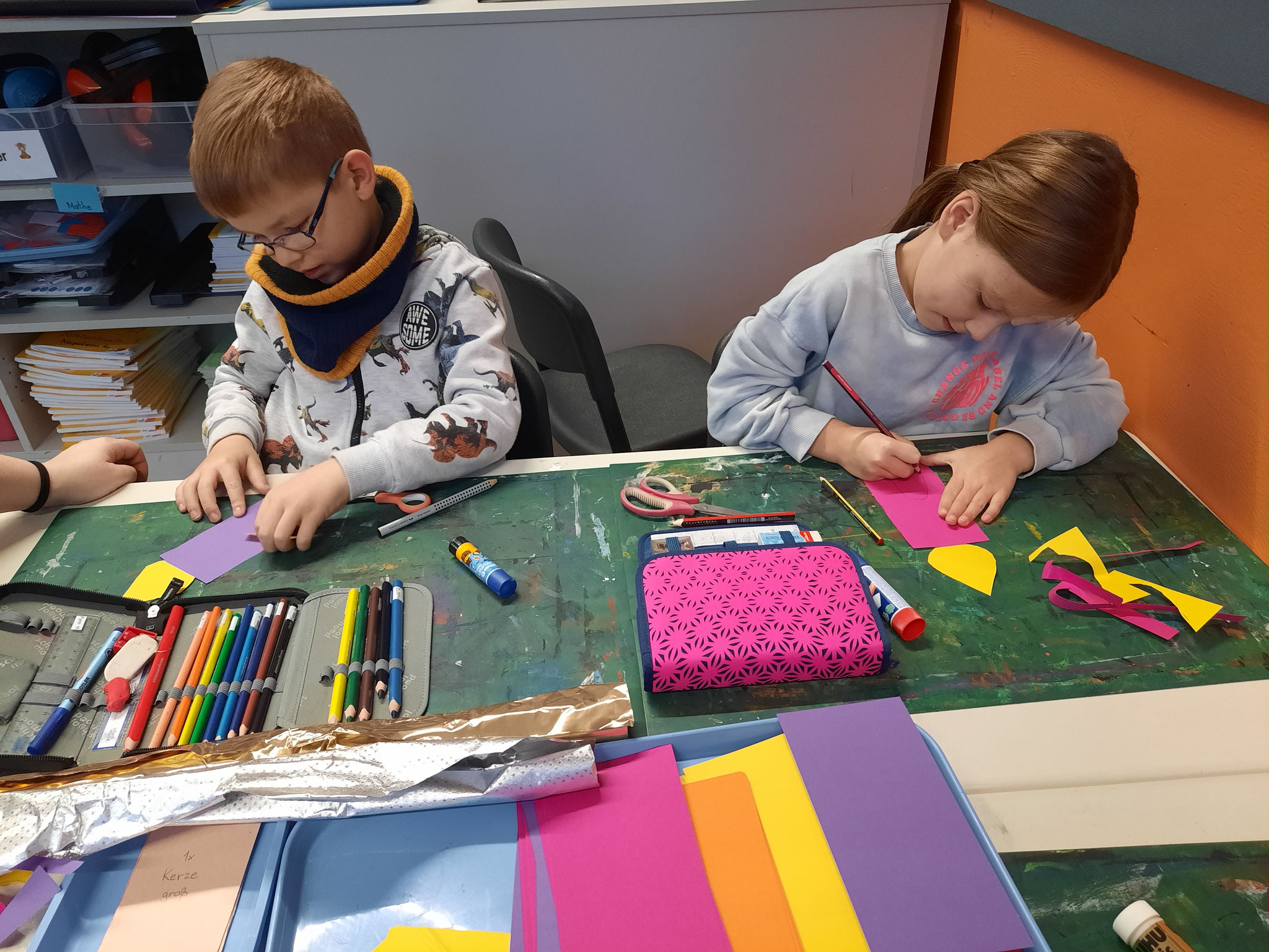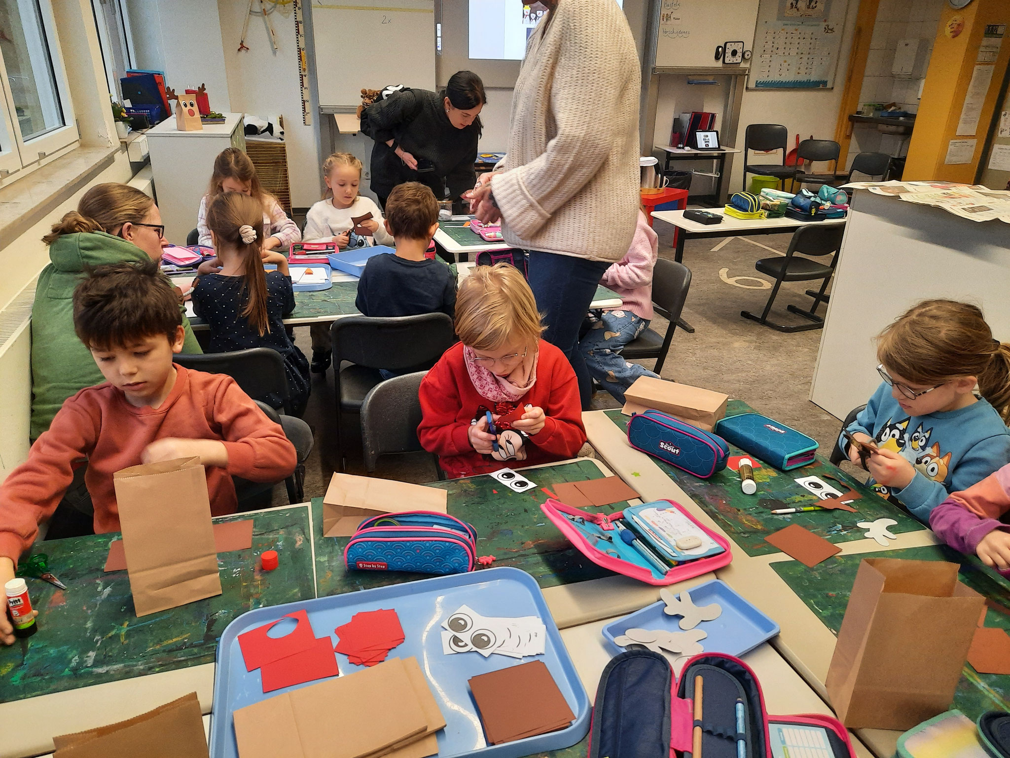 Bald ist es wieder so weit. St. Martin steht vor der Tür und damit auch unser traditioneller Umzug. Damit auch alle Overbergkinder der 1c mit strahlenden Laternen die Strecke gehen können, bastelten wir in den letzten Wochen sehr fleißig. Dabei hatten wir große Unterstützung von unseren Paten aus der 4c. Vielen Dank noch einmal dafür, liebe 4c!