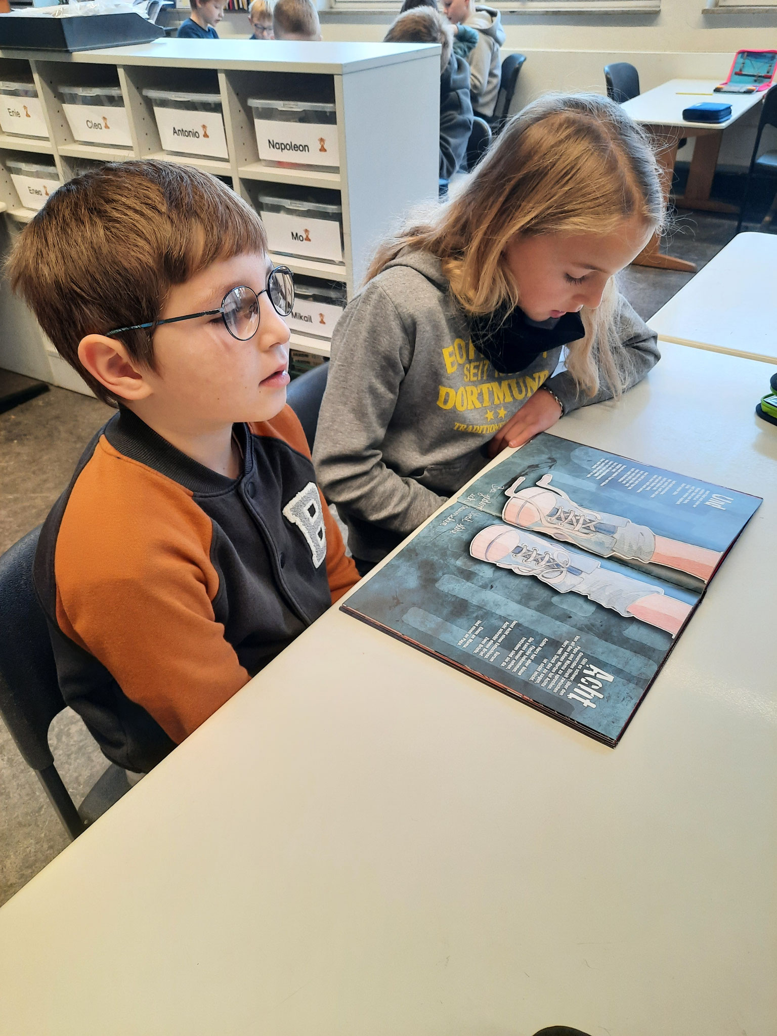 Dann machten wir uns mit unseren Paten auf den Weg durch die Overbergschule. Sie erklärten uns alles und anschließend spielten wir noch gemeinsam auf dem Schulhof.