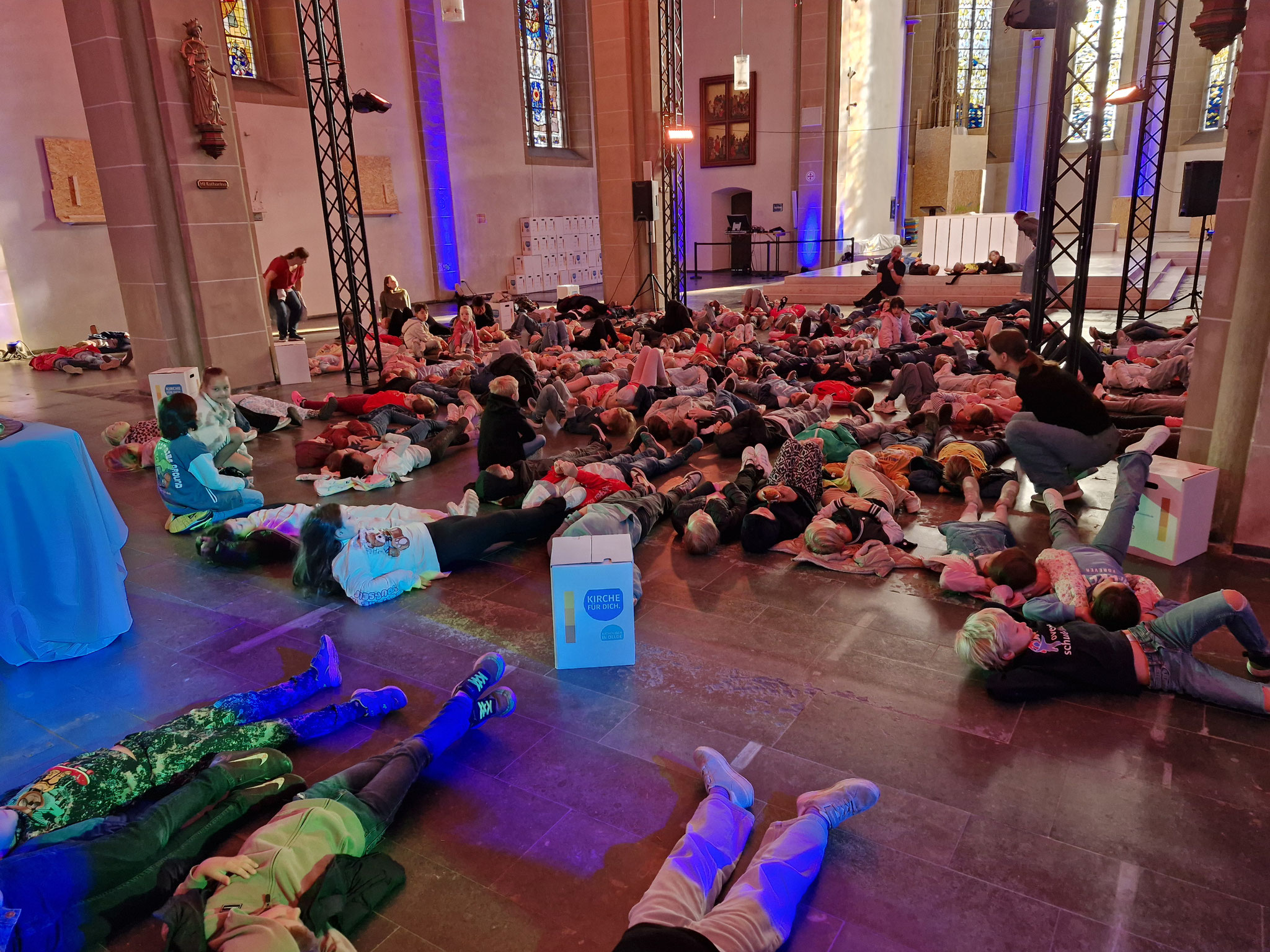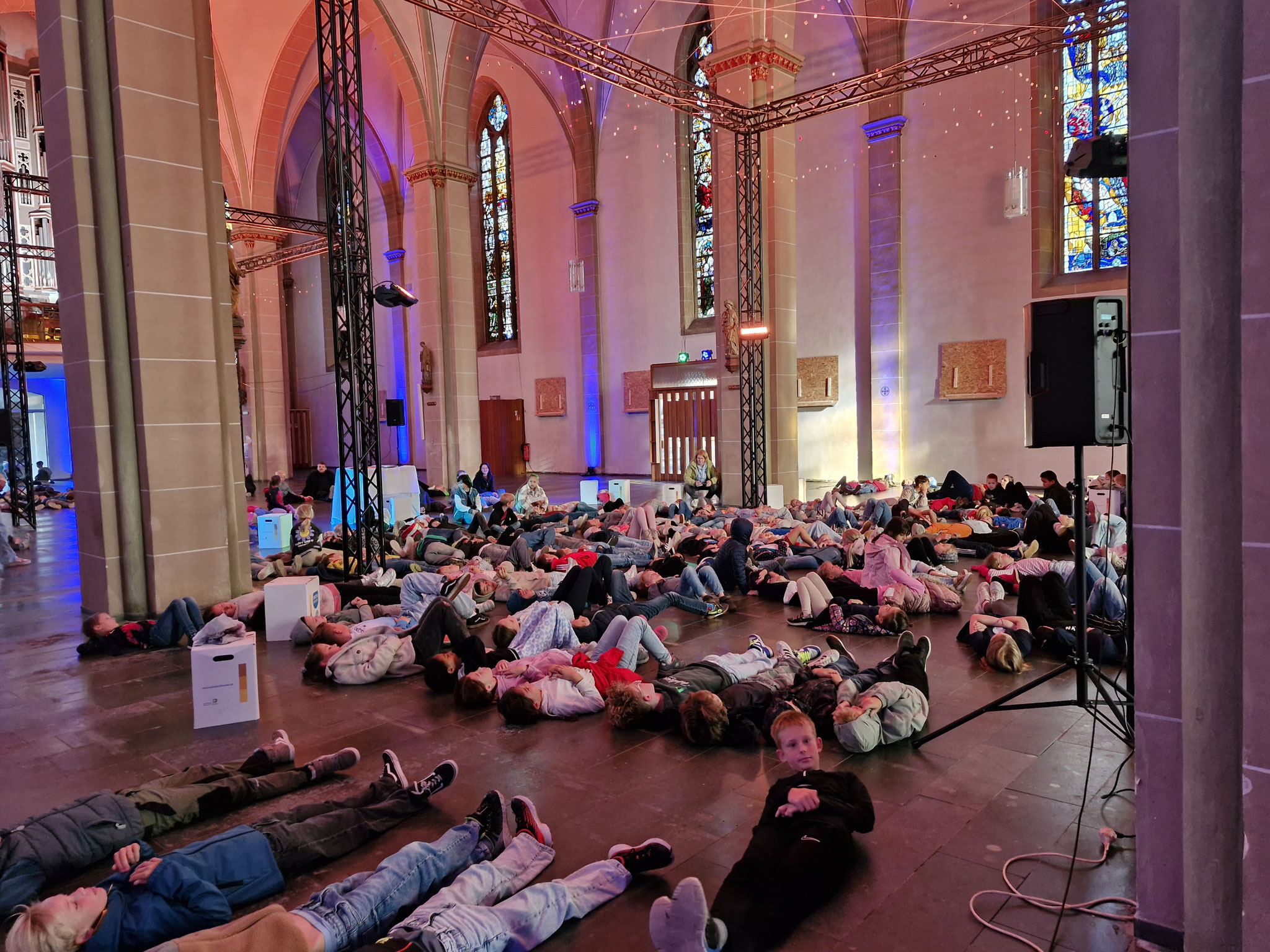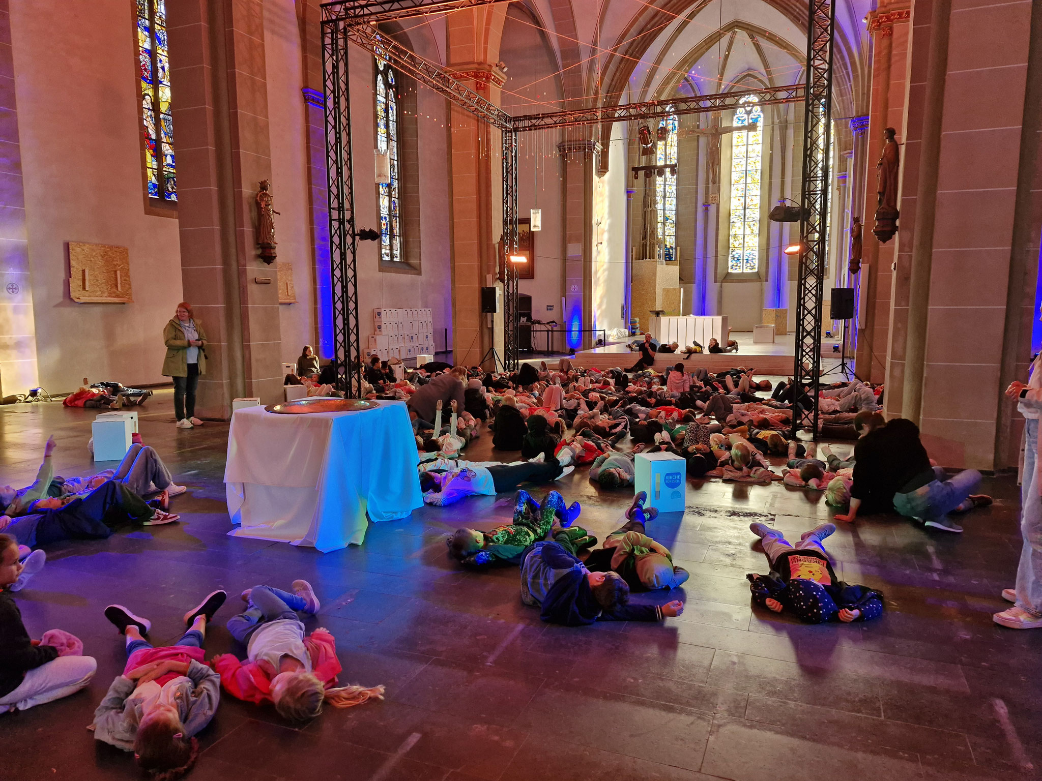 Freitag, 12.09.25: Unser Schuljahresanfangsgottesdienst war dieses Jahr ganz außergewöhnlich. In der leere Kirche konnte man Dinge entdecken, auf die man sonst nicht so achtet. Auch haben wir vorher noch nie in der Kirche auf dem Boden gelegen. Es war etwas ganz Besonderes.