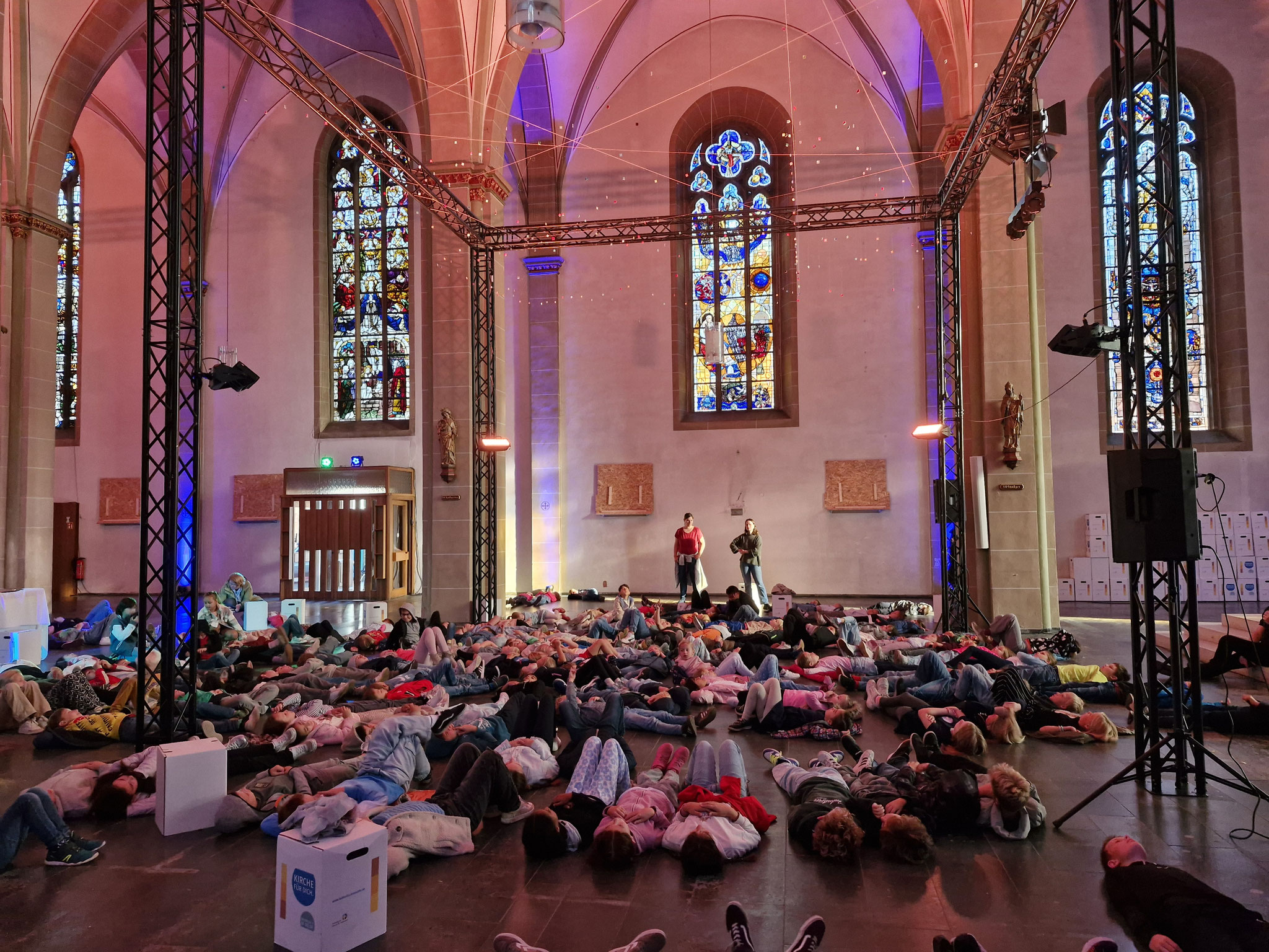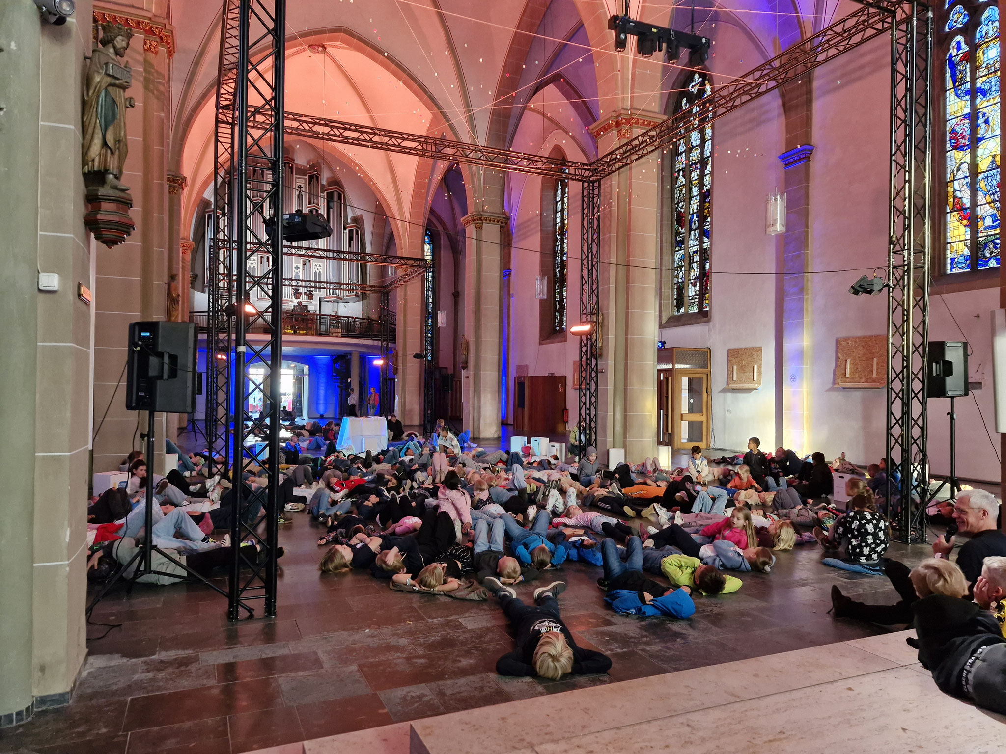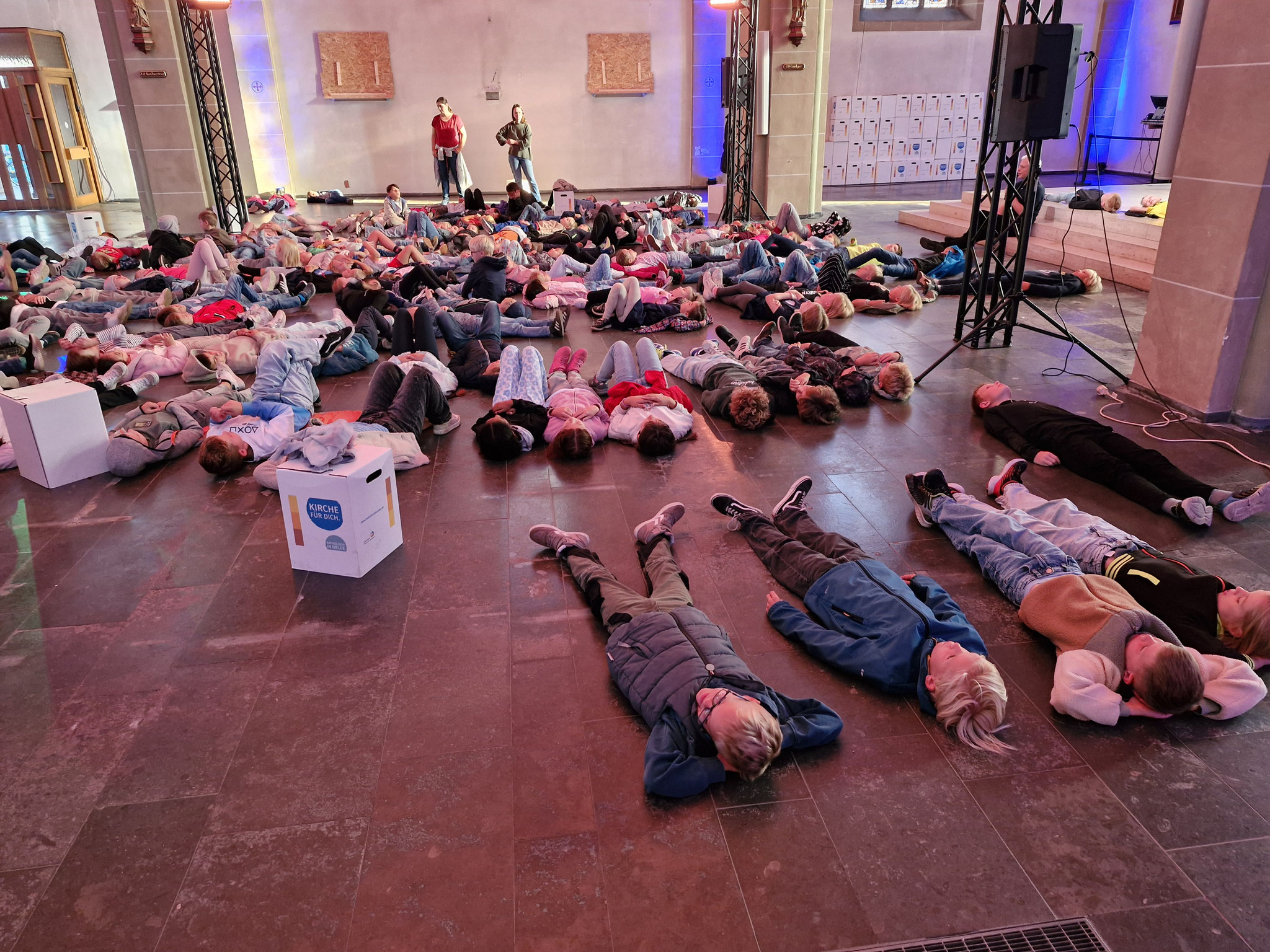 Freitag, 12.09.25: Unser Schuljahresanfangsgottesdienst war dieses Jahr ganz außergewöhnlich. In der leere Kirche konnte man Dinge entdecken, auf die man sonst nicht so achtet. Auch haben wir vorher noch nie in der Kirche auf dem Boden gelegen. Es war etwas ganz Besonderes.