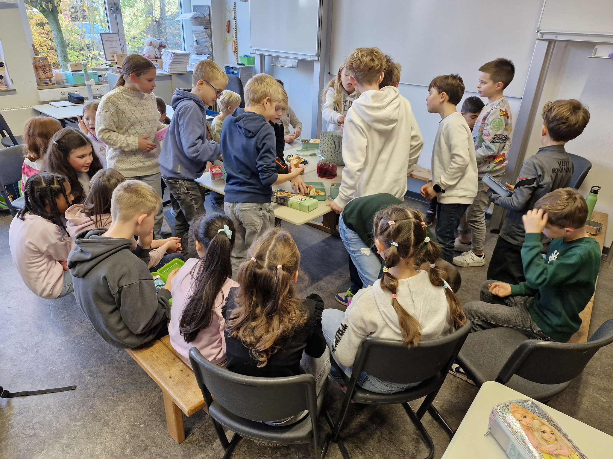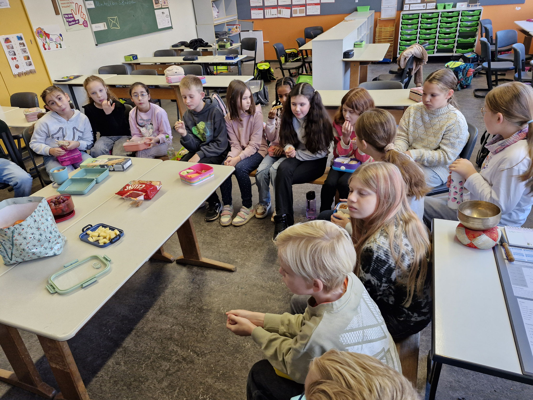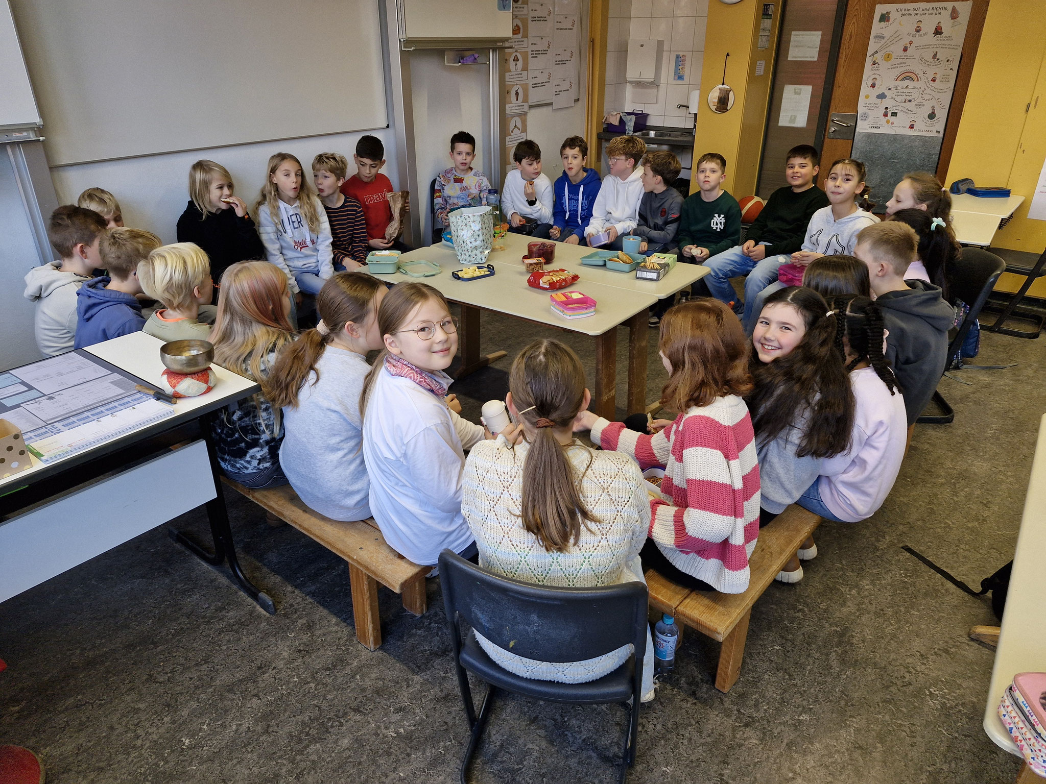 Anschließend haben wir - ganz im Sinne von St. Martin - unser Frühstück miteinander geteilt. Es war richtig schön, gemeinsam im großen Kreis zu sitzen und zu frühstücken.