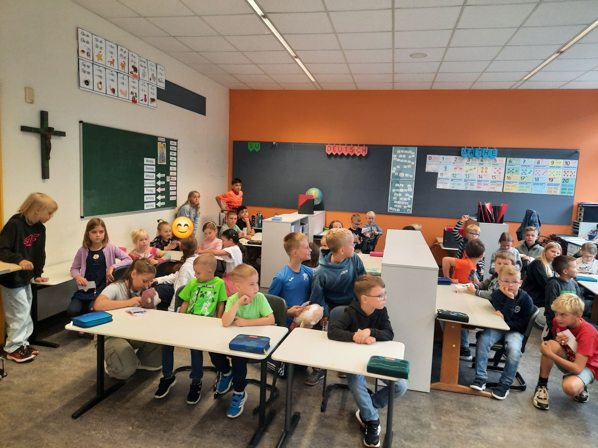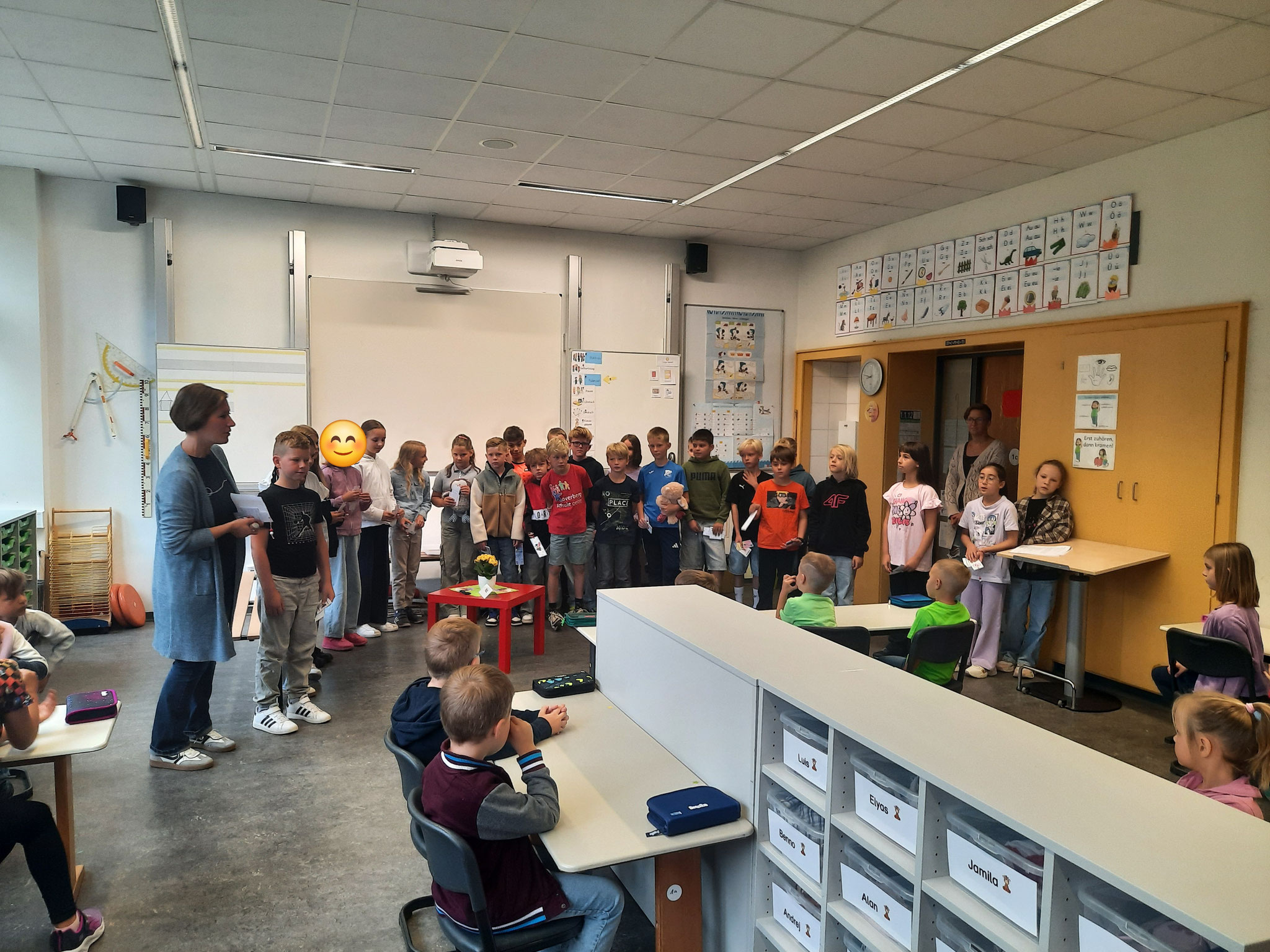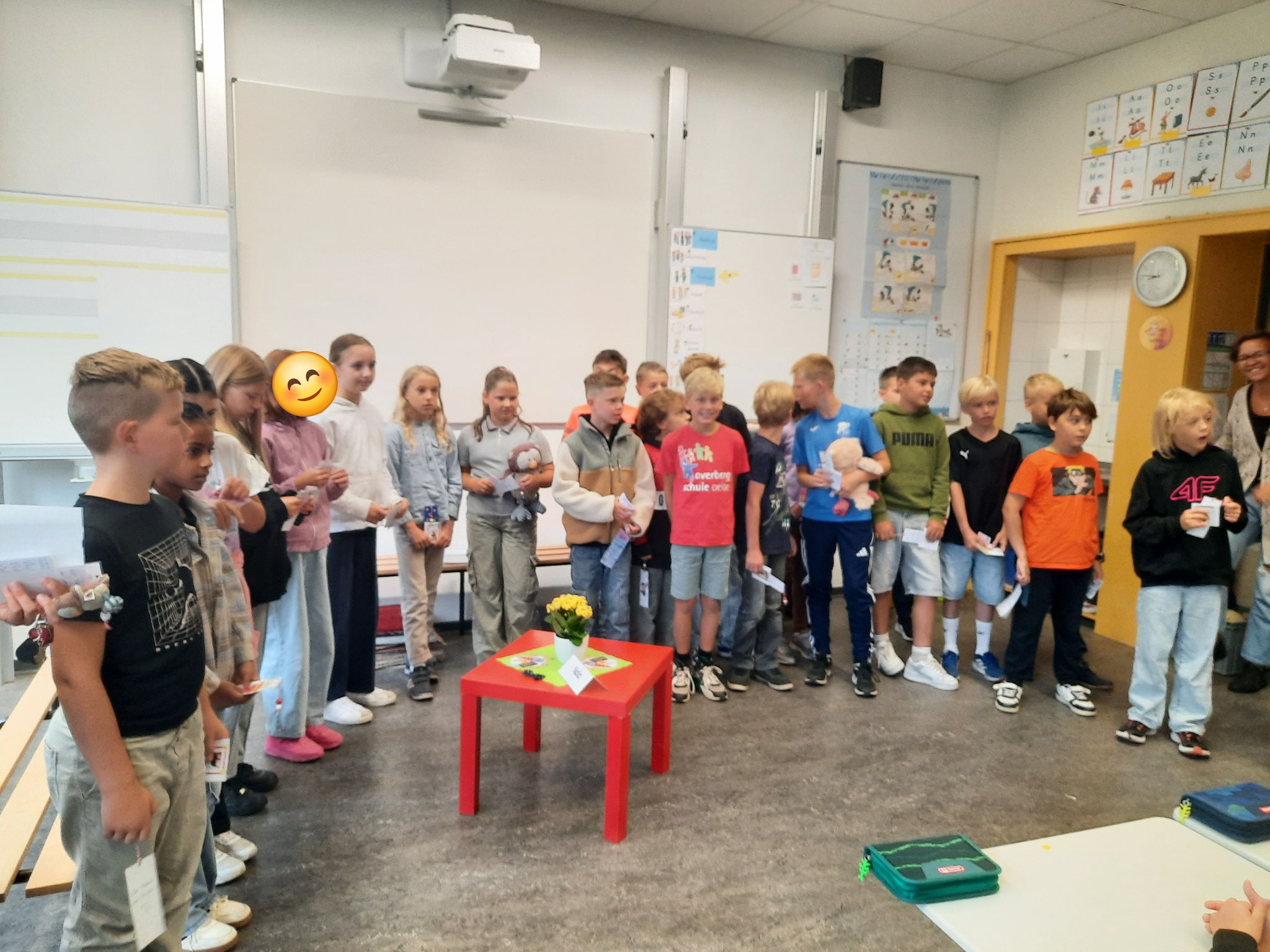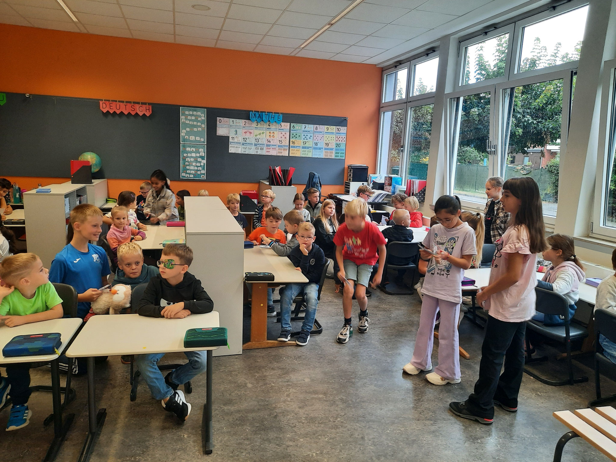 Freitag, 29.08.25: Jetzt sind wir im 4. Schuljahr und somit die Großen. Daher dürfen wir nun auch das tolle Amt einer Patenschaft übernehmen. Am ersten Freitag des Schuljahres war es dann soweit. Wir durften unsere neue Patenklasse, die Giraffenklasse (1c) kennenlernen. Alle (die großen und die kleinen Kinder) waren sehr aufgeregt. :-) Nach einem kurzen Besuch in der Klasse haben wir unseren Paten die Schule gezeigt und anschließend ausgiebig gemeinsam auf dem Schulhof gespielt. Wir freuen uns auf ein tolles Schuljahr und tollen Aktionen mit unseren Paten.