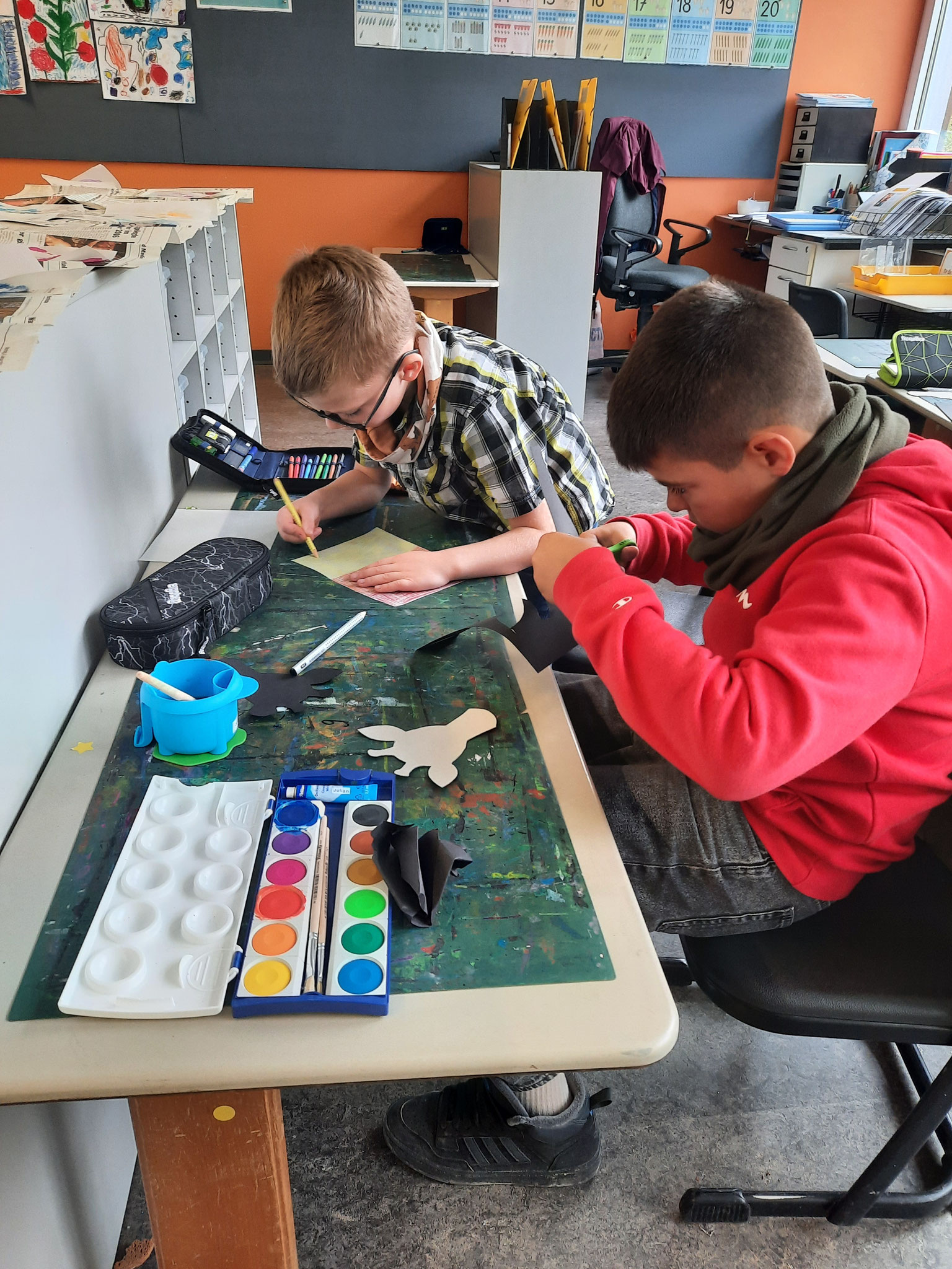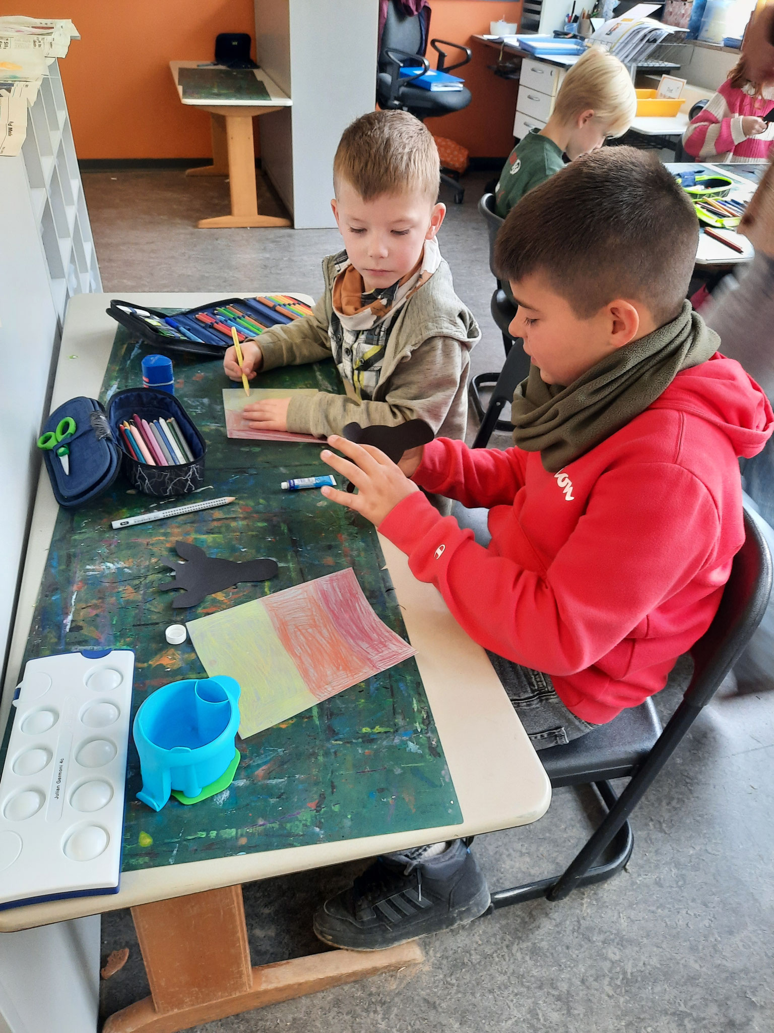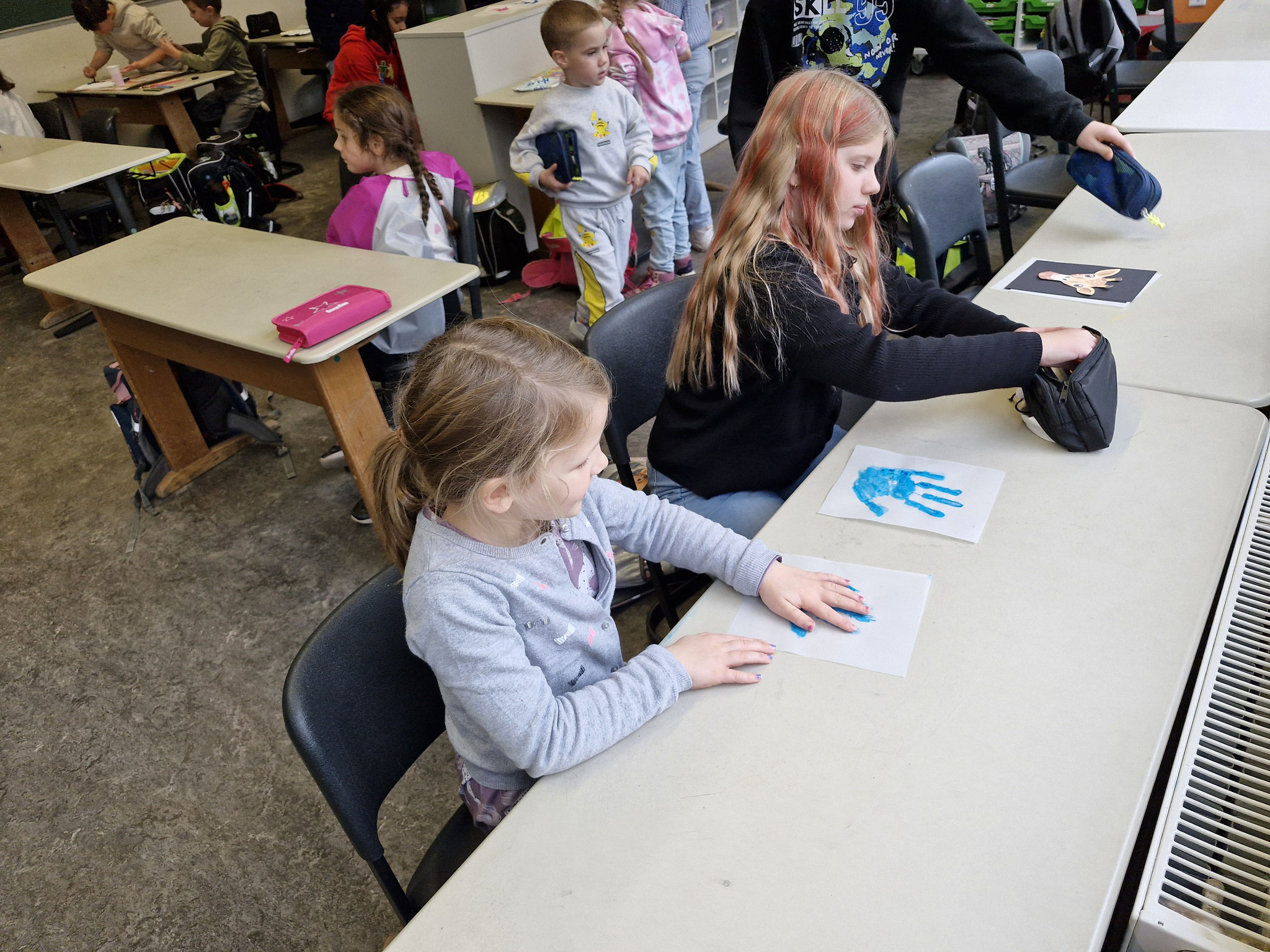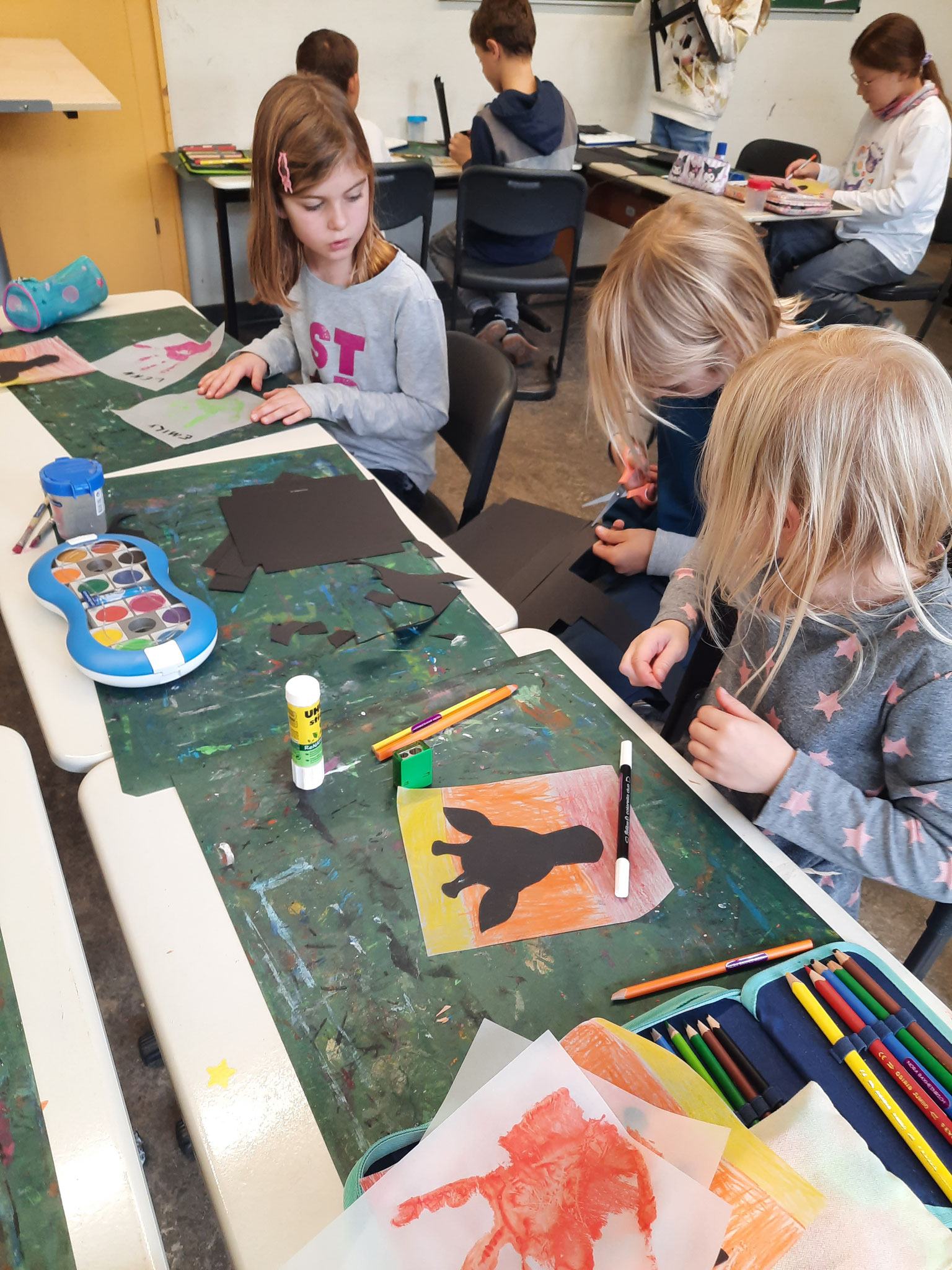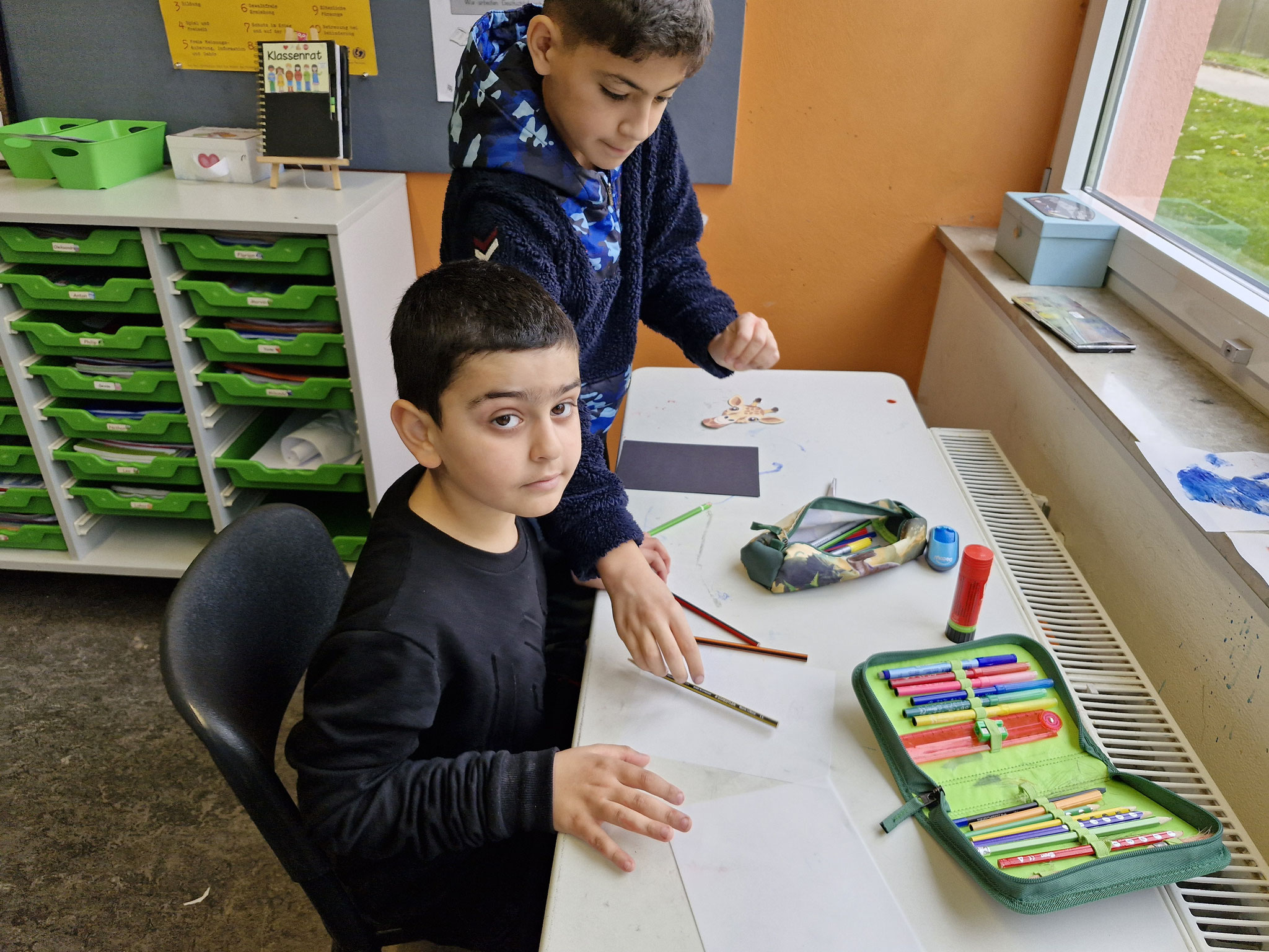 Freitag, 31.10.25: Unser Fest zu St. Martin rückt immer näher und unsere Paten möchten natürlich auch mit bunt gestalteten Laternen unseren großen Umzug mitmachen. Daher haben wir uns am vergangenen Freitag mit unserer Patenklasse getroffen und gemeinsam Laternen gebastelt. Mit unserer Hilfe haben die Erstklässler tolle Laternen mit Giraffen, bunten Farben und unseren Handabdrücken gestaltet. Jetzt kann St. Martin kommen. Es hat viel Spaß gemacht.
