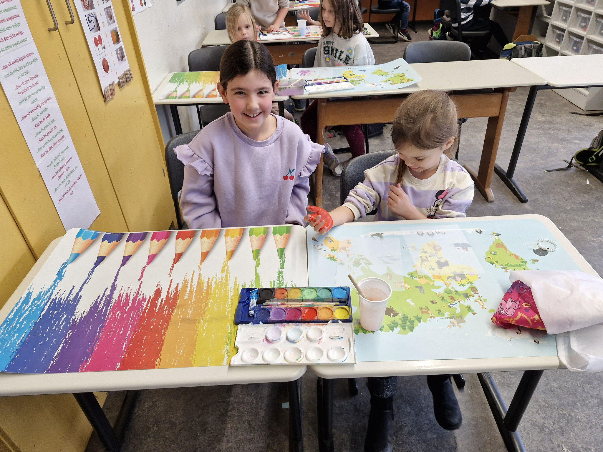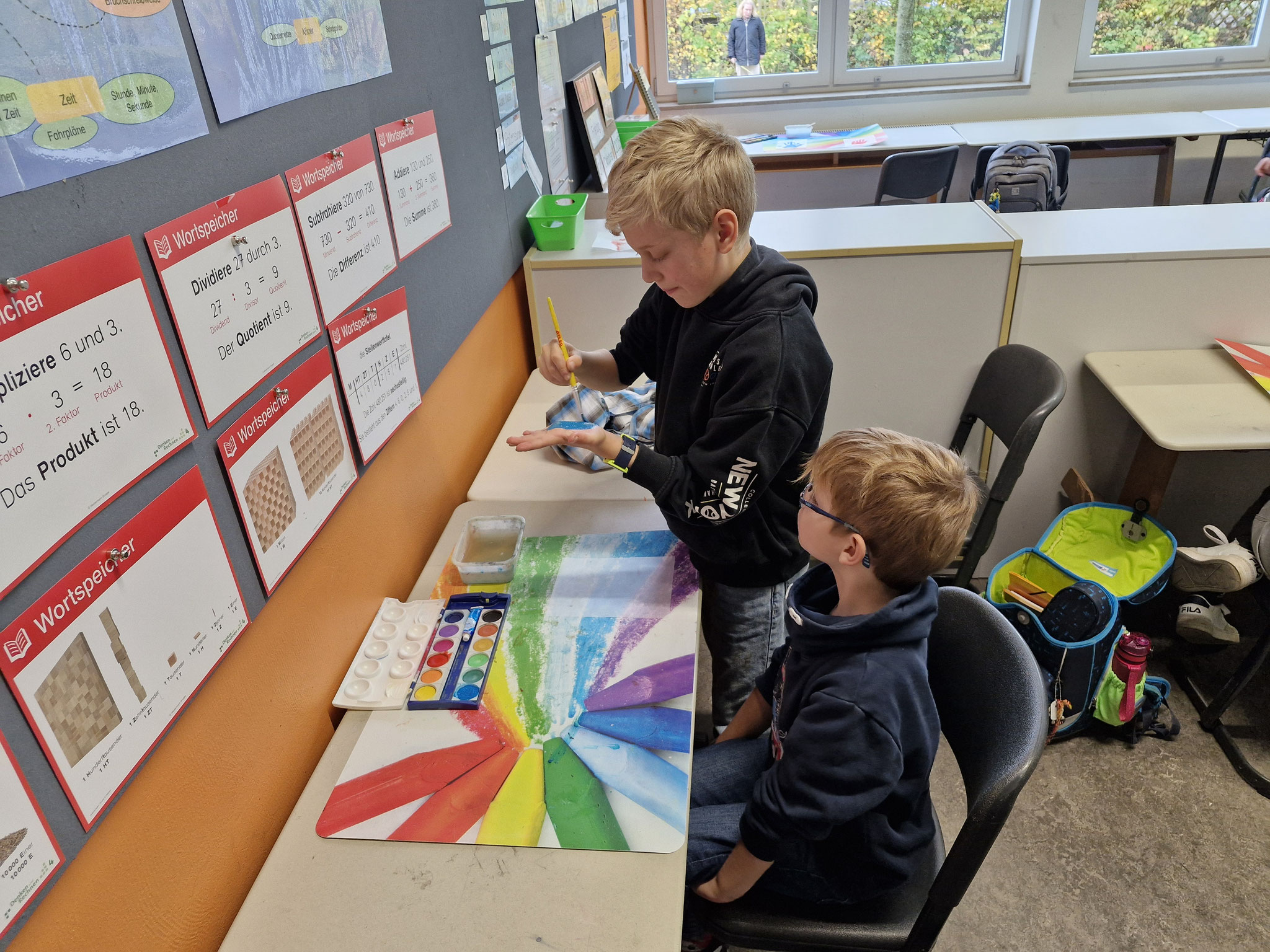 Freitag, 19.09.25: Im Sachunterricht haben wir uns lange mit dem Thema Kinderrechte beschäftigt. Welche Kinderrechte gibt es? Was bedeuten sie? Nach eingängiger Recherche haben wir in Gruppen zu einem Kinderrecht Plakate erstellt. Doch wir wollten unser Wissen gerne auch nach außen tragen und mal ermitteln, ob auch Erwachsene etwas über Kinderrechte wissen. Und so haben wir am vergangenen Freitag gemeinsam mit der 4a einen Stand auf dem Oelder Marktplatz aufgebaut, unsere Plakate ausgestellt und Besucher des Marktes interviewt. An unserem Stand haben wir unsere selbstgebastelten Sorgenpüppchen gegen eine Spende verteilt. Bei strahlendem Sonnenschein war es eine ganz tolle Aktion und hat allen viel Spaß gemacht. Die gesammelten Spenden kommen dem Projekt "Schule im Koffer" von Unicef zugute.